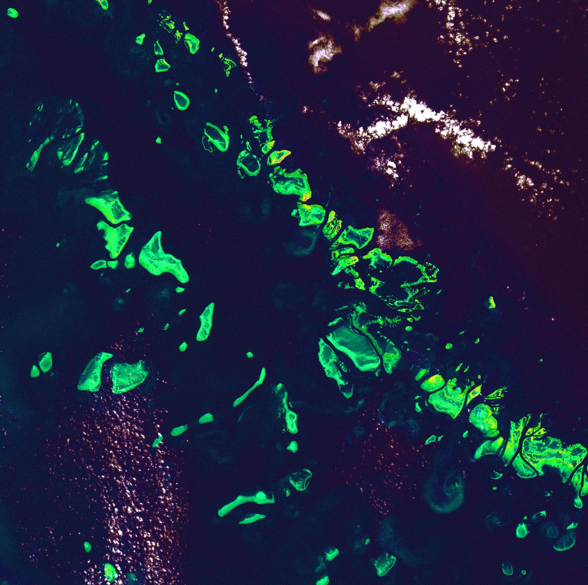 Great Barrier Reef - August 8th, 1999 Description: What might be mistaken for dinosaur bones being unearthed at a paleontological dig are some of the individual reefs that make up the Great Barrier Reef, the world's largest tropical coral reef system. The reef stretches more than 2,000 kilometers (1,240 miles) along the coast of Queensland, Australia. It supports astoundingly complex and diverse communities of marine life and is the largest structure on the planet built by living organisms. Credit: USGS/NASA/Landsat 7 To learn more about the Landsat satellite go to: <a href="http://landsat.gsfc.nasa.gov/" rel="nofollow">landsat.gsfc.nasa.gov/</a> <b><a href="http://www.nasa.gov/centers/goddard/home/index.html" rel="nofollow">NASA Goddard Space Flight Center</a></b> enables NASA’s mission through four scientific endeavors: Earth Science, Heliophysics, Solar System Exploration, and Astrophysics. Goddard plays a leading role in NASA’s accomplishments by contributing compelling scientific knowledge to advance the Agency’s mission. <b>Follow us on <a href="http://twitter.com/NASA_GoddardPix" rel="nofollow">Twitter</a></b> <b>Join us on <a href="http://www.facebook.com/pages/Greenbelt-MD/NASA-Goddard/395013845897?ref=tsd" rel="nofollow">Facebook</a></b>