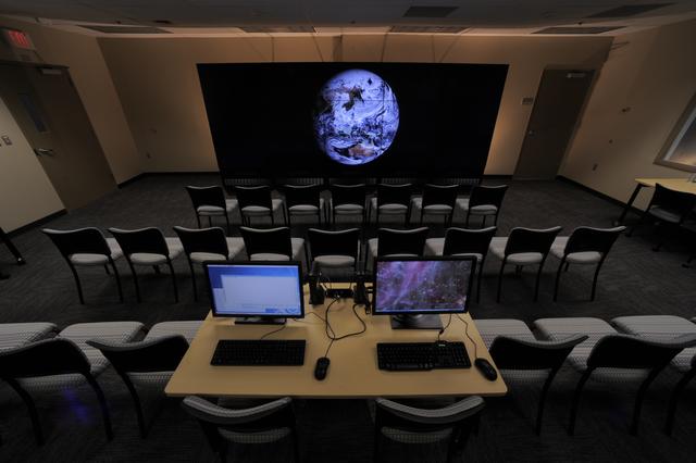 The NASA Center for Climate Simulation (NCCS) Data Exploration Theater features a 17- by 6-foot multi-screen visualization wall for engaging visitors and scientists with high-definition movies of simulation results. Here, the wall displays a 3.5-kilometer-resolution global simulation that captures numerous cloud types at groundbreaking fidelity. Credit: NASA/Pat Izzo To learn more about NCCS go to: <a href="http://www.nasa.gov/topics/earth/features/climate-sim-center.html" rel="nofollow">www.nasa.gov/topics/earth/features/climate-sim-center.html</a> NASA Goddard Space Flight Center is home to the nation's largest organization of combined scientists, engineers and technologists that build spacecraft, instruments and new technology to study the Earth, the sun, our solar system, and the universe.