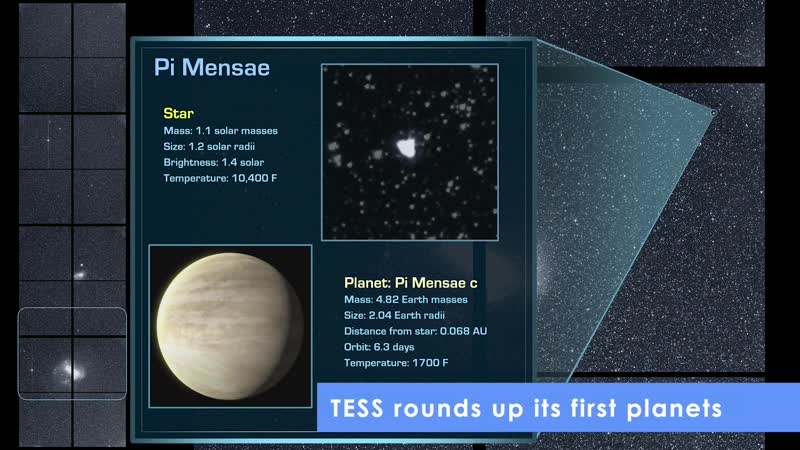 NASA’s Transiting Exoplanet Survey Satellite (TESS) has discovered 21 planets outside our solar system and captured data on other interesting events occurring in the southern sky during its first year of science. TESS has now turned its attention to the northern hemisphere to complete the most comprehensive planet-hunting expedition ever undertaken. TESS began hunting for exoplanets (or worlds orbiting distant stars) in the southern sky in July of 2018, while also collecting data on supernovae, black holes and other phenomena in its line of sight. Along with the planets TESS has discovered, the mission has identified over 800 candidate exoplanets that are waiting for confirmation by ground-based telescopes. To search for exoplanets, TESS uses four large cameras to watch a 24-by-96-degree section of the sky for 27 days at a time. Some of these sections overlap, so some parts of the sky are observed for almost a year. TESS is concentrating on stars closer than 300 light-years from our solar system, watching for transits, which are periodic dips in brightness caused by an object, like a planet, passing in front of the star. On July 18, the southern portion of the survey was completed and the spacecraft turned its cameras to the north. When it completes the northern section in 2020, TESS will have mapped over three quarters of the sky. Here are a few of the interesting objects and events TESS saw during its first year.