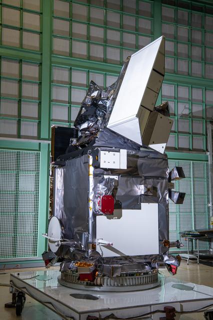 The Plankton, Aerosol, Cloud, ocean Ecosystem (PACE) in the clean room at NASA's Goddard Space Flight Center in Greenbelt, Maryland on October 31st, 2023. PACE's unprecedented spectral coverage will provide the first-ever global measurements designed to identify phytoplankton community composition. The mission will make global ocean color measurements, using the Ocean Color Instrument (OCI), to provide extended data records on ocean ecology and global biogeochemistry along with polarimetry measurements, using the Spectro-polarimeter for Planetary Exploration (SPEXone) and the Hyper Angular Research Polarimeter (HARP2) to provide extended data records on clouds and aerosols. The Earth-observing satellite mission, built at Goddard Space Flight Center in Greenbelt, MD, will continue and advance observations of global ocean color, biogeochemistry, and ecology, as well as the carbon cycle, aerosols and clouds.