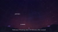 What are some skywatching highlights in February 2023? See Jupiter and Venus appear nearer each night, as they head for a close conjunction at the start of March. Use bright stars Capella and Elnath to identify the constellation Auriga, and then find your way to two distant star clusters using Sirius as a guidepost. Additional information about topics covered in this episode of What's Up, along with still images from the video, and the video transcript, are available at https://solarsystem.nasa.gov/skywatching/home.