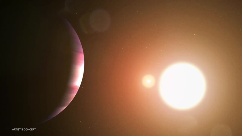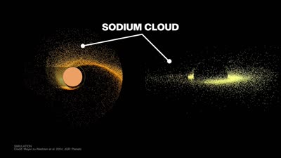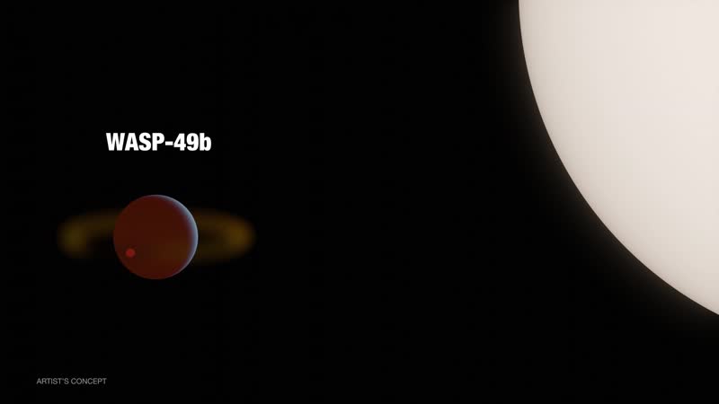 The existence of exomoons (moons around planets outside our solar system) has long been theorized, but their detection has remained elusive due to their small size and faintness. A new study, however, suggests that a potential exomoon may be orbiting the WASP-49 b, a gas giant planet around another star (also known as an exoplanet). WASP-49 b is located 635 light-years from Earth. Its possible moon is believed to be rocky and volcanically active, similar to Jupiter's moon Io. The study's evidence centers on the detection of a sodium cloud near WASP-49 b that was discovered in 2017, and which shares characteristics with the gas emissions seen around Io. In the new study, scientists tracked the cloud’s motion and the data strongly indicate the presence of a separate orbiting body – an exomoon – as the source. While further observations are needed to confirm this exomoon's existence, current findings support its presence. If WASP-49 b indeed hosts a moon similar in size to Earth, it may face a violent fate, as gravitational forces from the exoplanet could eventually cause it to disintegrate. Credits: NASA/JPL-Caltech