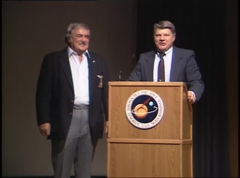 Famous for his portrayal of Chief Engineer Montgomery Scott -- "Scotty" -- on Star Trek, James Doohan visited NASA's Goddard Space Flight Center in Greenbelt, Maryland, in March 1992. Doohan gave his presentation (entitled "Engineer of the Future") to a standing-room-only crowd in Goddard's Building 8 auditorium before answering questions from the audience. Doohan's appearance was not quite four months after "Star Trek VI: The Undiscovered Country" hit theaters, and little more than half-a-year before he reprised his role in an episode of "Star Trek: The Next Generation." Tom Huber, then Goddard's director of engineering, introduced Doohan, whose lecture was presented under the auspices of the Goddard Engineering Colloquium. This video recording of the presentation was digitized in June 2022 from a Betacam cassette copy found in the archives of the Office of Communications at Goddard.