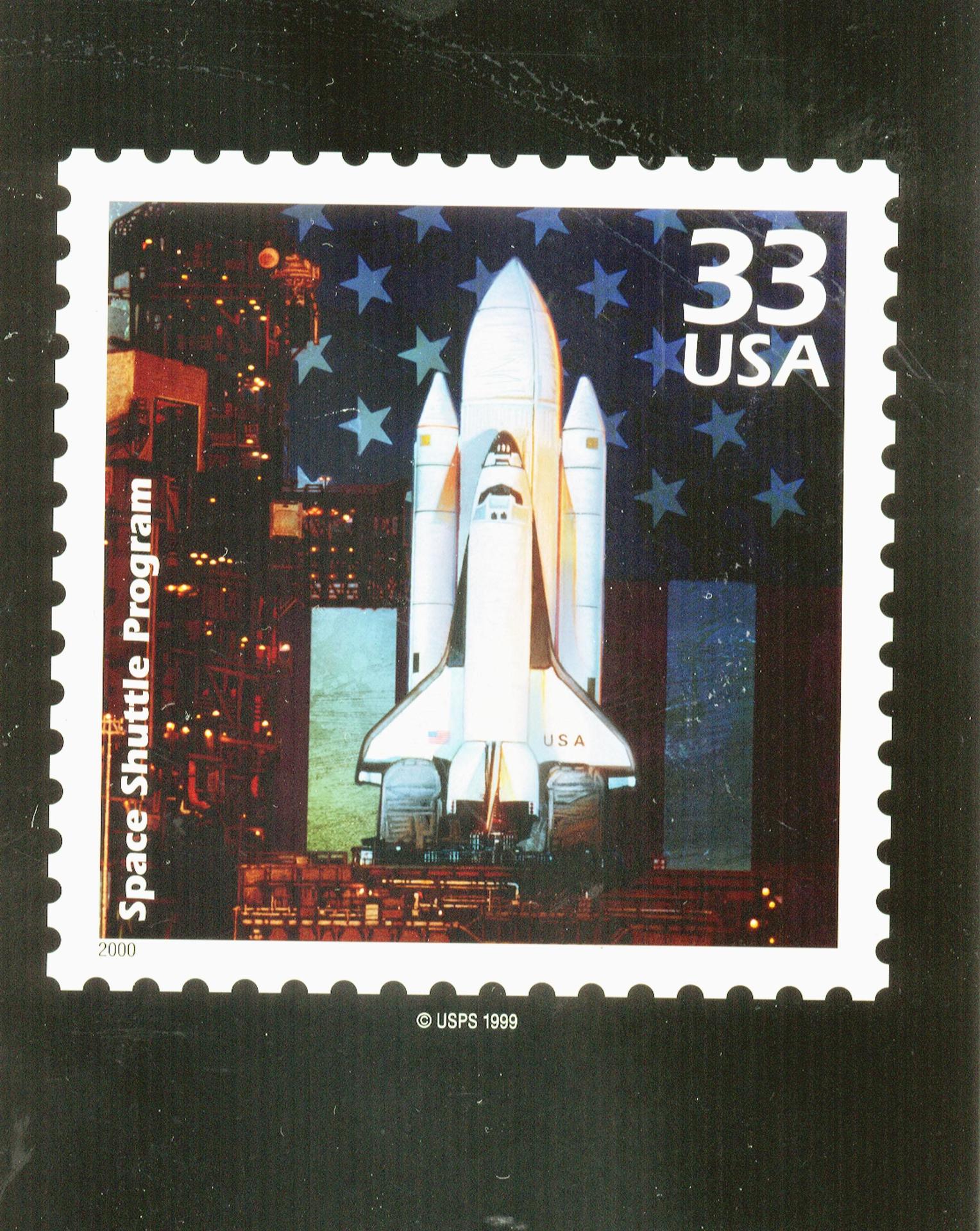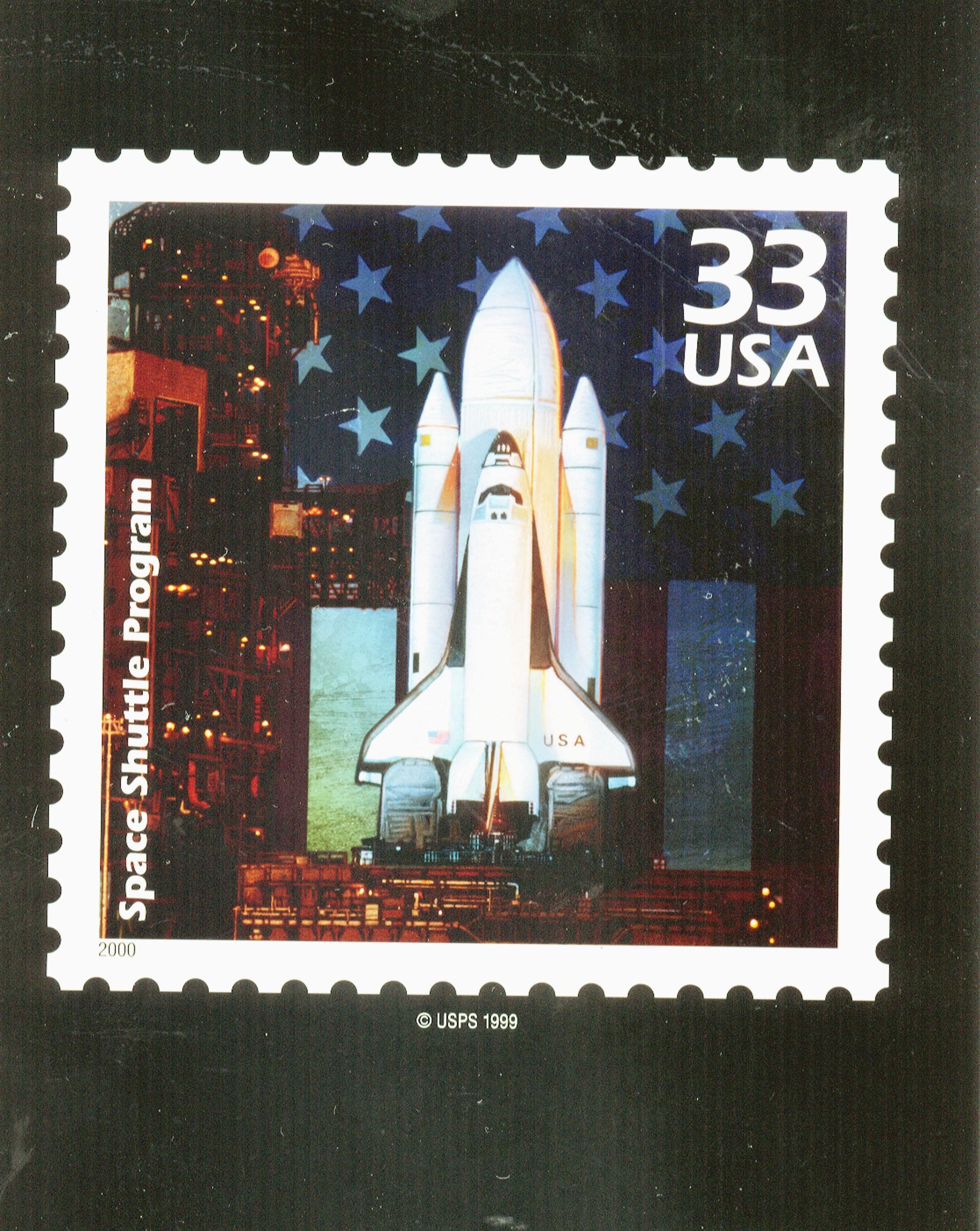 One of a new series of U.S. Postage stamps, The 1980s, is unveiled at the KSC Visitors Complex. The stamp, shown here, is the Space Shuttle Columbia, first launched in April 1981. This collection of stamps is the ninth in the Post Office's "Celebrate the Century" commemorative series honoring the last 100 years of American history. Taking part in the "First Day of Issue Ceremony" were astronaut Richard Linnehan, U.S. Representative, 15th Congressional District, Dave Weldon, U.S. Postal Service District Manager Viki Brennan, Center Director Roy Bridges and President of the Visitor Complex Rick Abramson