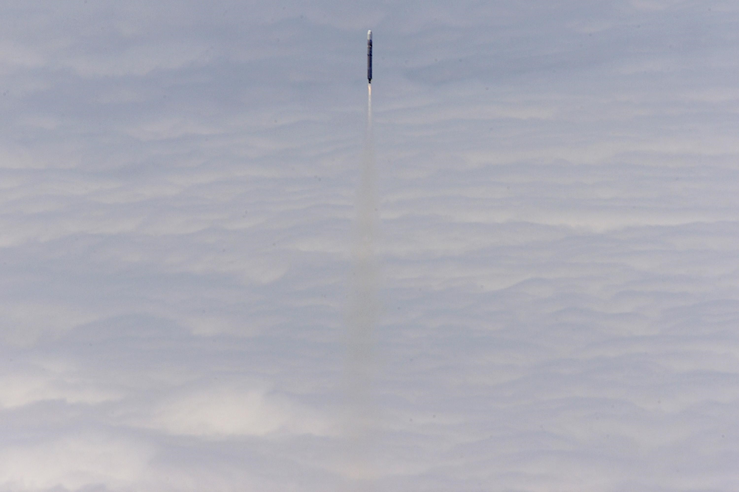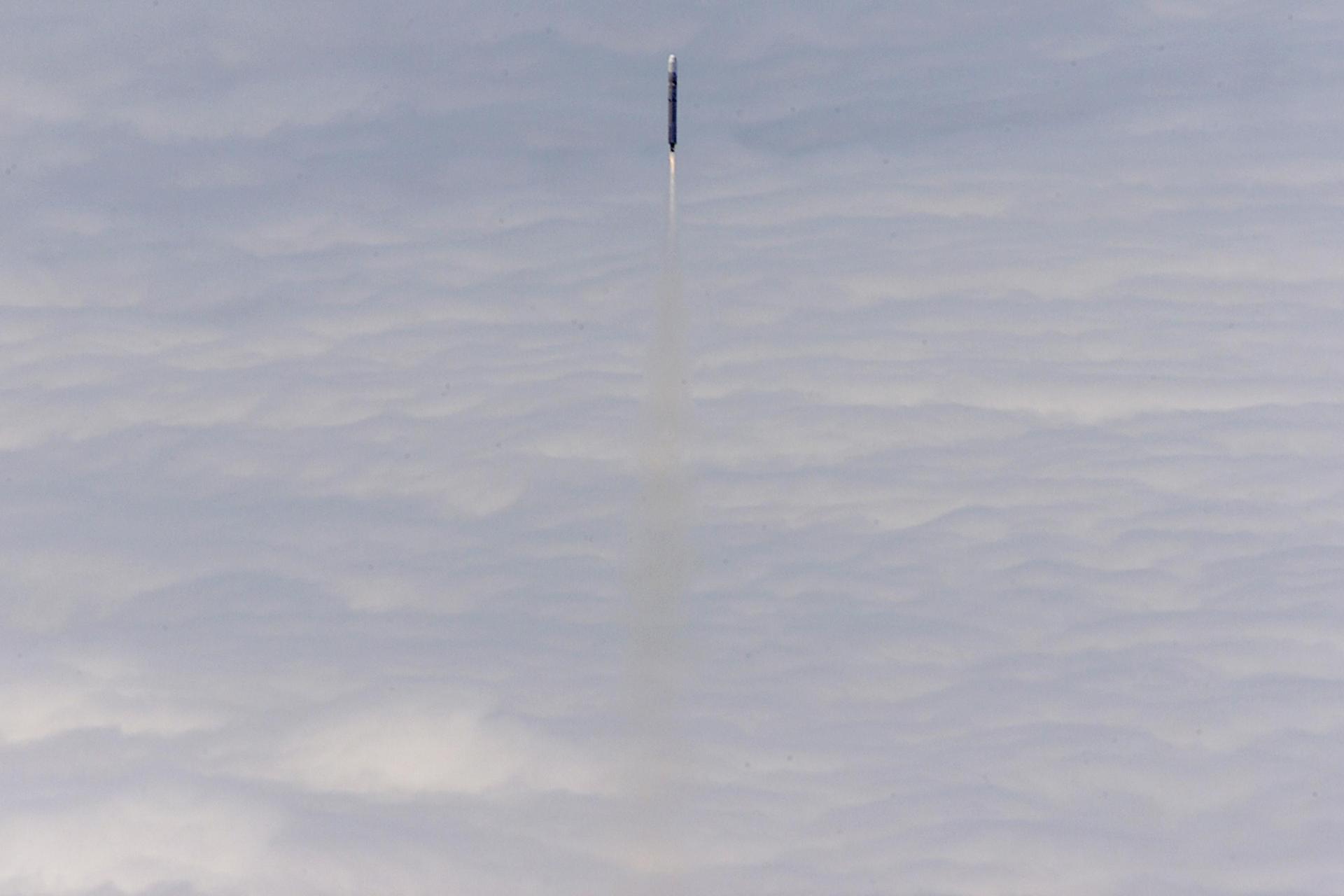 VANDENBERG AIR FORCE BASE, CALIF. -- The National Oceanic and Atmospheric Administration (NOAA) spacecraft (NOAA-M) streaks above a cloud layer after a successful launch at 2:23 p.m. EDT aboard a Titan II rocket from Vandenberg Air Force Base, Calif. NOAA-M is another in a series of polar-orbiting Earth environmental observation satellites that provide global data to NOAA's short- and long-range weather forecasting systems
