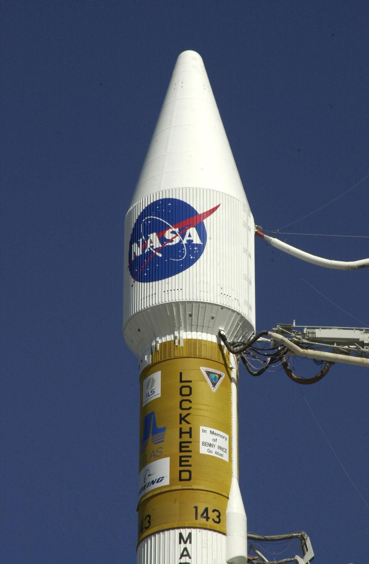 KENNEDY SPACE CENTER, FLA. - The upper stage of this Lockheed Martin Atlas/Centaur rocket encloses the Tracking and Data Relay Satellite-I (TDRS-I), the second in a new series of telemetry satellites that are replenishing the existing on-orbit fleet of six spacecraft. The TDRS System is the primary source of space-to-ground voice, data and telemetry for the Space Shuttle. It also provides communications with the International Space Station and scientific spacecraft in low-Earth orbit such as the Hubble Space Telescope. This new advanced series of satellites will extend the availability of TDRS communications services until about 2017. Launch of TDRS-I atop the Atlas rocket is scheduled today between 5:39 - 6:19 p.m. EST from Launch Pad 36-A, Cape Canaveral Air Force Station