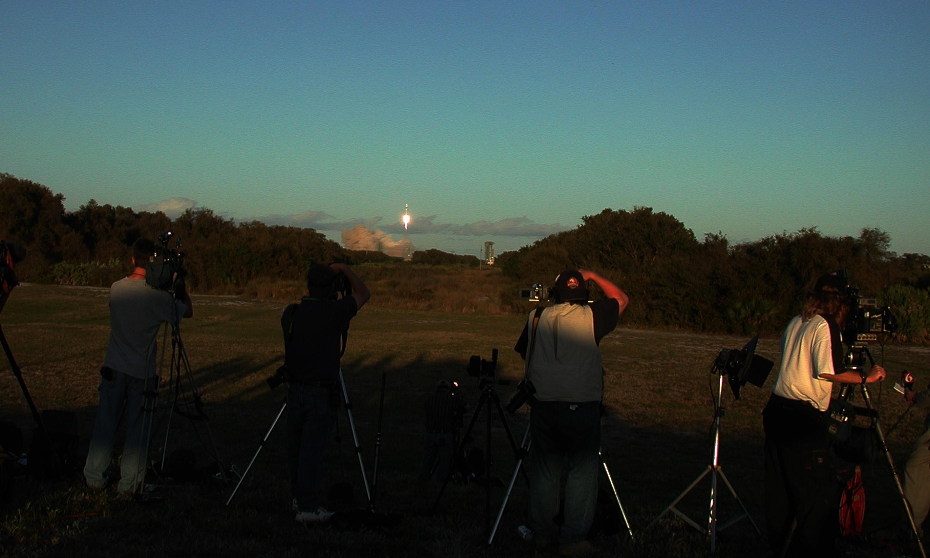KENNEDY SPACE CENTER, FLA. -- Photographers capture the launch of the Tracking and Data Relay Satellite-I (TDRS-I) aboard a Lockheed Martin Atlas IIA rocket from Launch Pad 36-A, Cape Canaveral Air Force Station. TDRS-I replenishes the existing on-orbit fleet of six spacecraft. The TDRS System is the primary source of space-to-ground voice, data and telemetry for the Space Shuttle. It also provides communications with the International Space Station and scientific spacecraft in low-Earth orbit such as the Hubble Space Telescope. This new advanced series of satellites will extend the availability of TDRS communications services until about 2017. Liftoff occurred at 5:59 p.m. EST