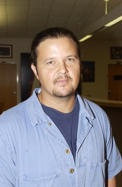 KENNEDY SPACE CENTER, FLA. -- Andy Fish, an SRB retrieval diver and diver medical technician with United Space Alliance, is in the spotlight for helping rescue a diver in distress off Cape Canaveral Sept. 11. Fish and others were on a certification exercise on board Freedom Star, one of the Shuttle Rocket Booster retrieval ships, manned by USA workers. The ship was near the location of a lobster diving boat that radioed the U.S. Coast Guard for help when one of the divers experienced difficulty breathing on his return to the surface. Hearing the call for help, the captain of the Freedom Star offered to help. Fish had experience with distressed divers. He stayed with the diver in the recompression chamber aboard the Freedom Star until the ship reached Port Canaveral where a KSC Occupational Health doctor waited. The diver was stabilized and taken to Florida Hospital. .
