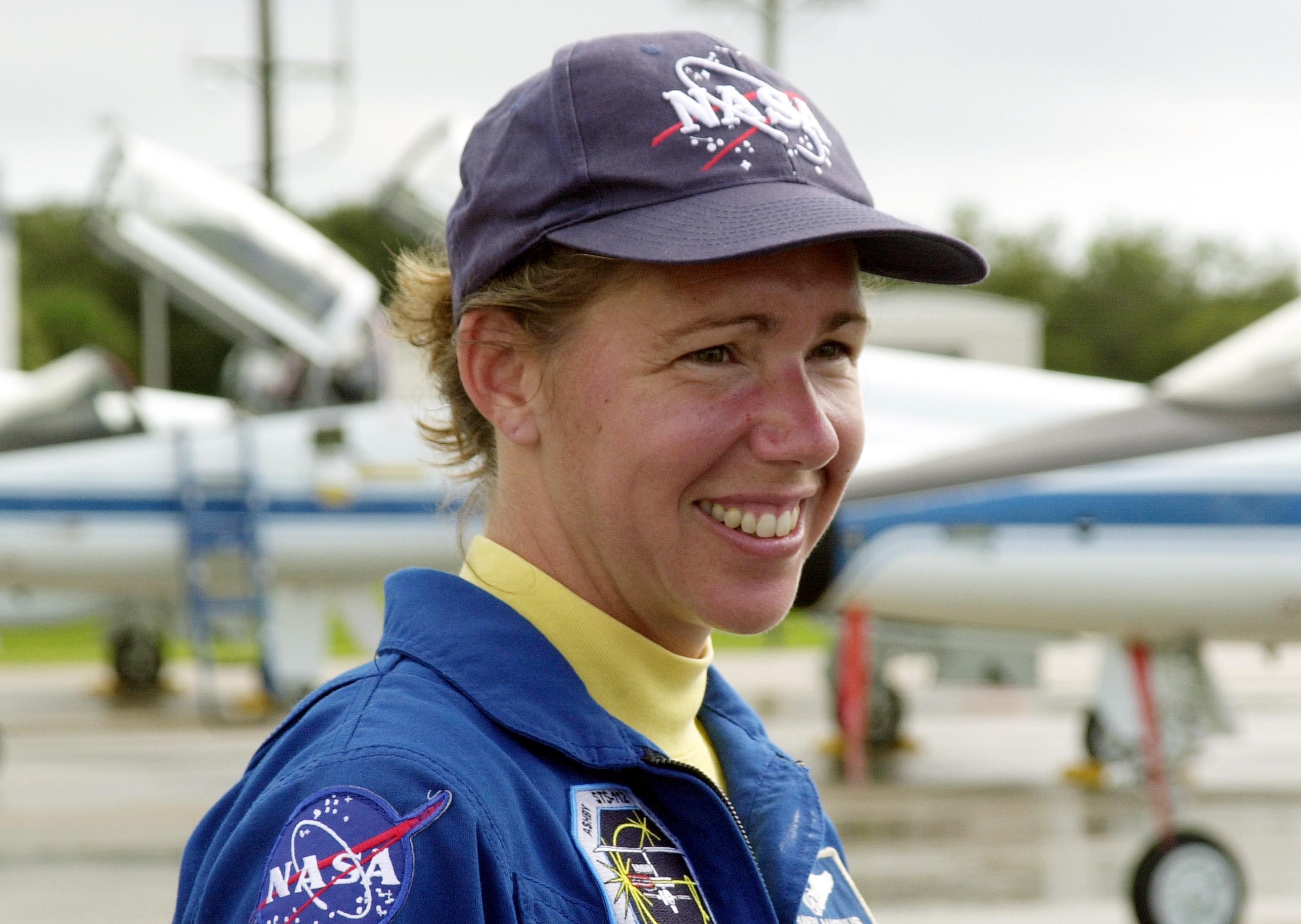 KENNEDY SPACE CENTER, FLA. -- STS-112 Mission Specialist Sandra Magnus is happy to return to KSC to prepare for launch. She will be making her first Shuttle flight. STS-112, aboard Space Shuttle Atlantis, is the 15th assembly mission to the International Space Station. Atlantis will be carrying the S1 Integrated Truss Structure, the first starboard truss segment, to be attached to the central truss segment, S0, and the Crew and Equipment Translation Aid (CETA) Cart A. The CETA is the first of two human-powered carts that will ride along the ISS railway, providing mobile work platforms for future spacewalking astronauts. The 11-day mission includes three spacewalks. Launch is scheduled for Oct. 2 between 2 and 6 p.m.