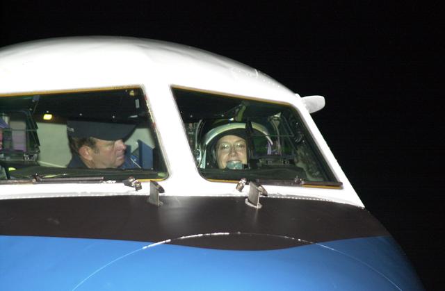 KENNEDY SPACE CENTER, FLA. --STS-112 Pilot Pamela Melroy prepares to taxi the Shuttle Training Aircraft to the runway at the Shuttle Landing Facility as part of landing exercises.
