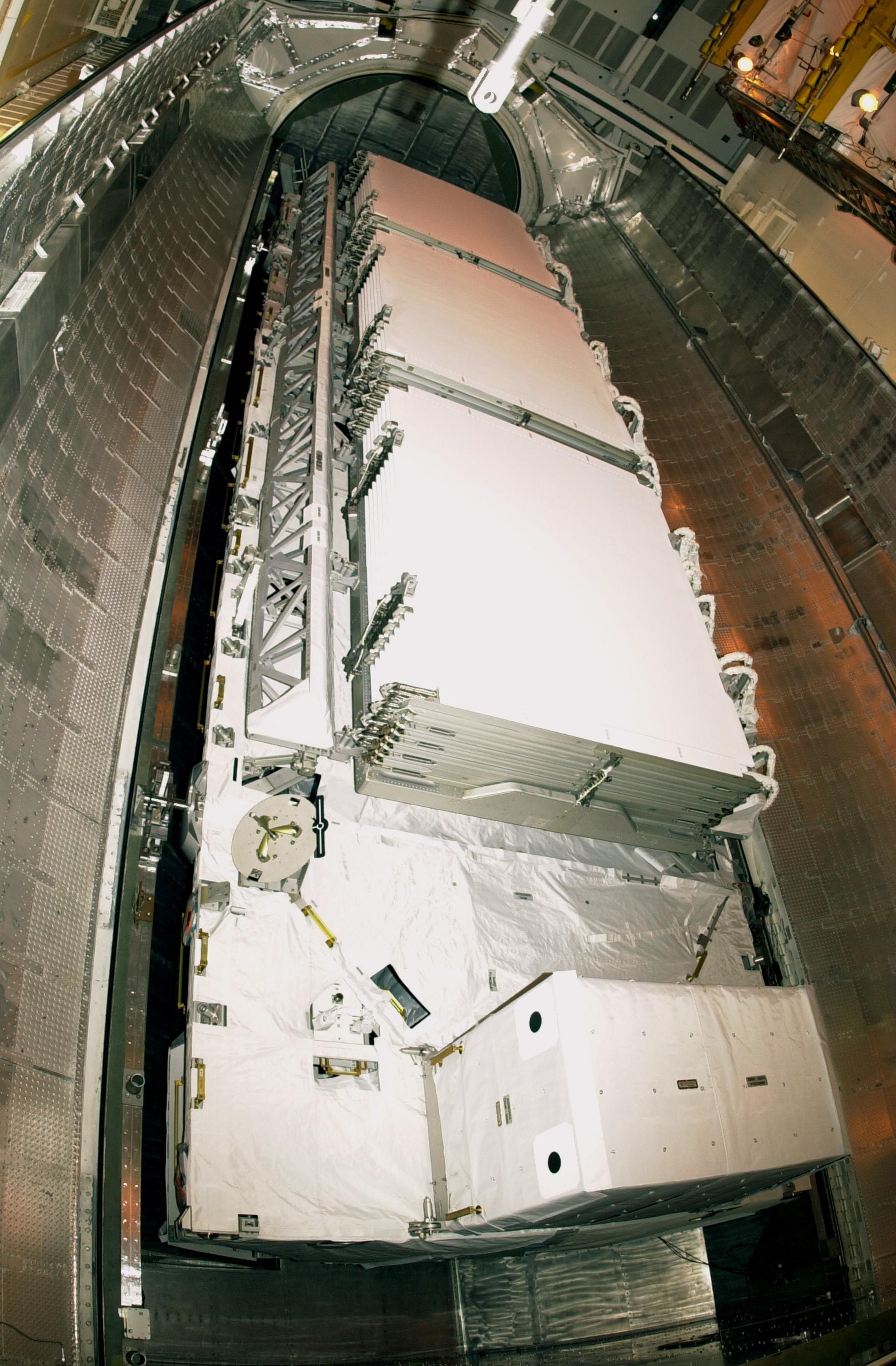 KENNEDY SPACE CENTER, FLA. -- At Launch Complex 39A, the payload canister doors are open to reveal the P1 truss before transfer to the Payload Changeout Room. The P1 truss is the primary payload for Mission STS-113 to the International Space Station. It is the first port truss segment which will be attached to the Station’s central truss segment, S0. Once delivered, the P1 truss will remain stowed until flight 12A.1. The mission will also deliver the Expedition 6 crew to the Station and return Expedition 5 to Earth. Space Shuttle Endeavour is scheduled to launch no earlier than Nov. 10 on the 11-day mission.