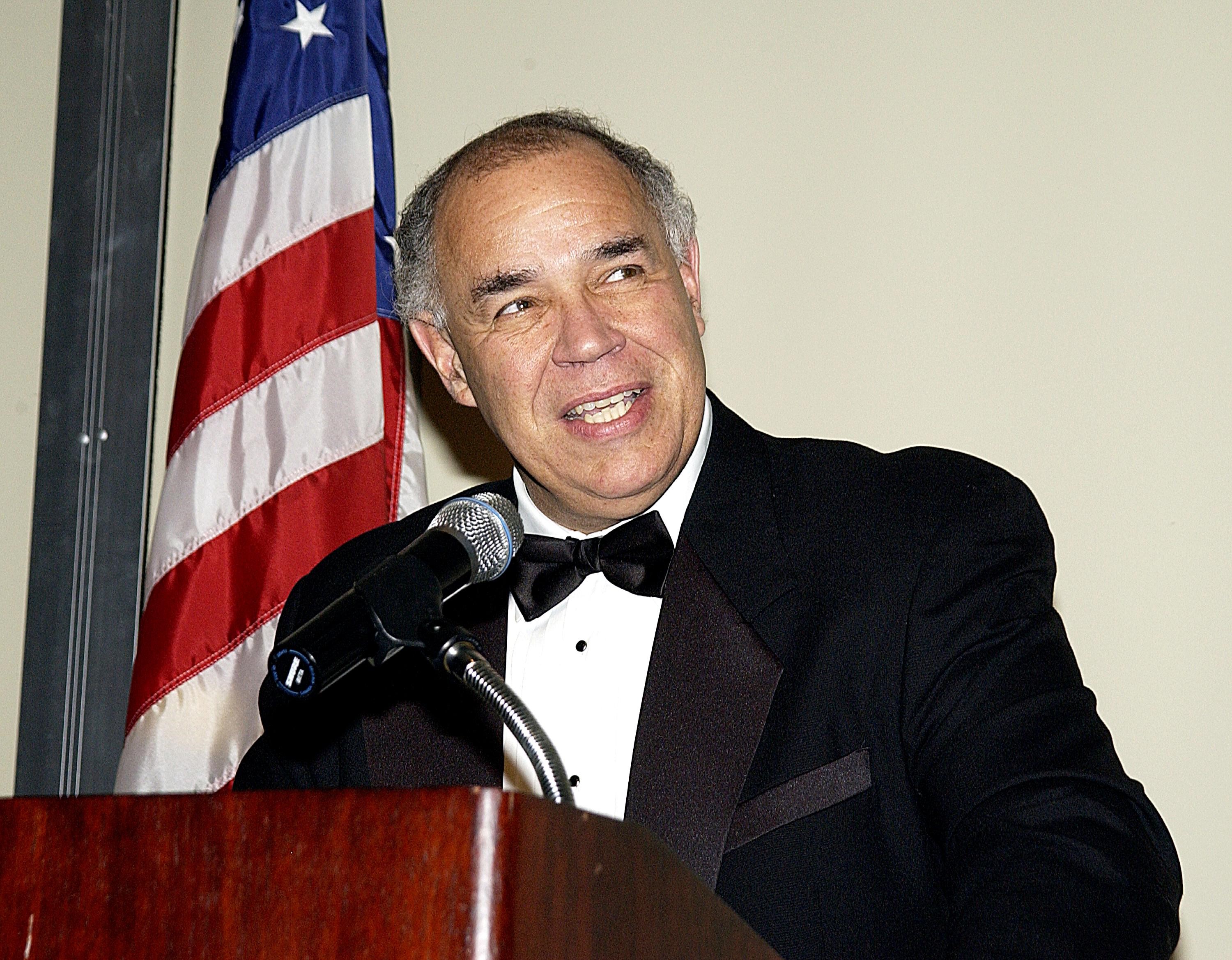 KENNEDY SPACE CENTER, FLA. -- NASA Deputy Administrator and former astronaut Frederick Gregory is the featured speaker at a formal dinner held in the Debus Conference Center at the Kennedy Space Center Visitor Complex. Adrian Laffitte, director of Atlas Programs for Lockheed Martin Astronautics at Cape Canaveral Air Force Station, was honored as the winner of the 2003 Dr. Kurt H. Debus Award from the National Space Club Florida Committee at the dinner. The Debus Award was created by the committee to recognize significant achievements and contributions made in Florida to American aerospace efforts.