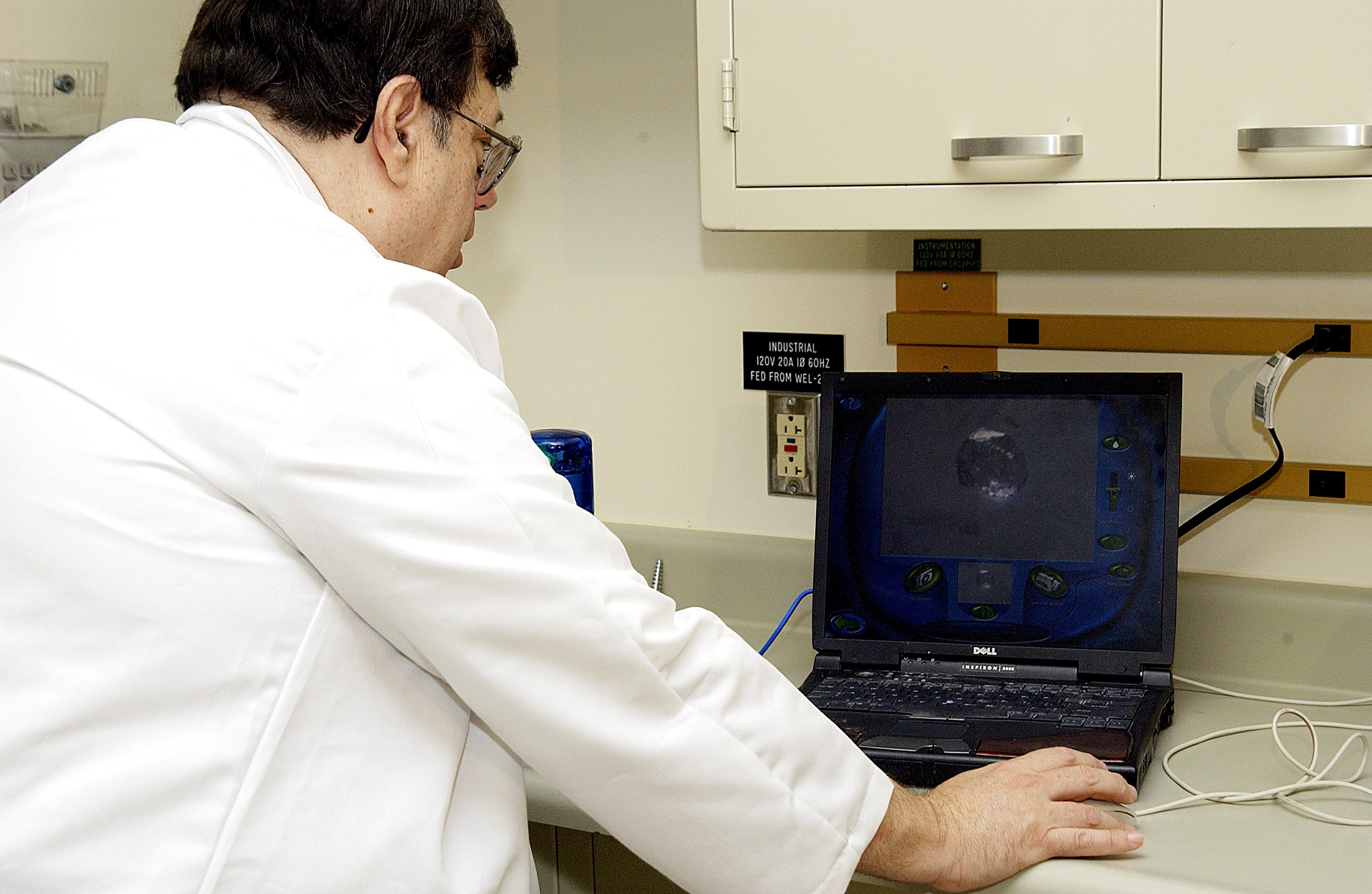 KENNEDY SPACE CENTER, FLA. - Barry Perlman, Pembroke Pines Charter Middle School in Florida, prepares a computer to receive data from an experiment carried on mission STS-107. Several experiments were found during the search for Columbia debris. Included in the Commercial ITA Biomedical Experiments payload on mission STS-107 are urokinase cancer research, microencapsulation of drugs, the Growth of Bacterial Biofilm on Surfaces during Spaceflight (GOBBSS), and tin crystal formation. The latter was sponsored by the Pembroke Pines Charter Middle School.