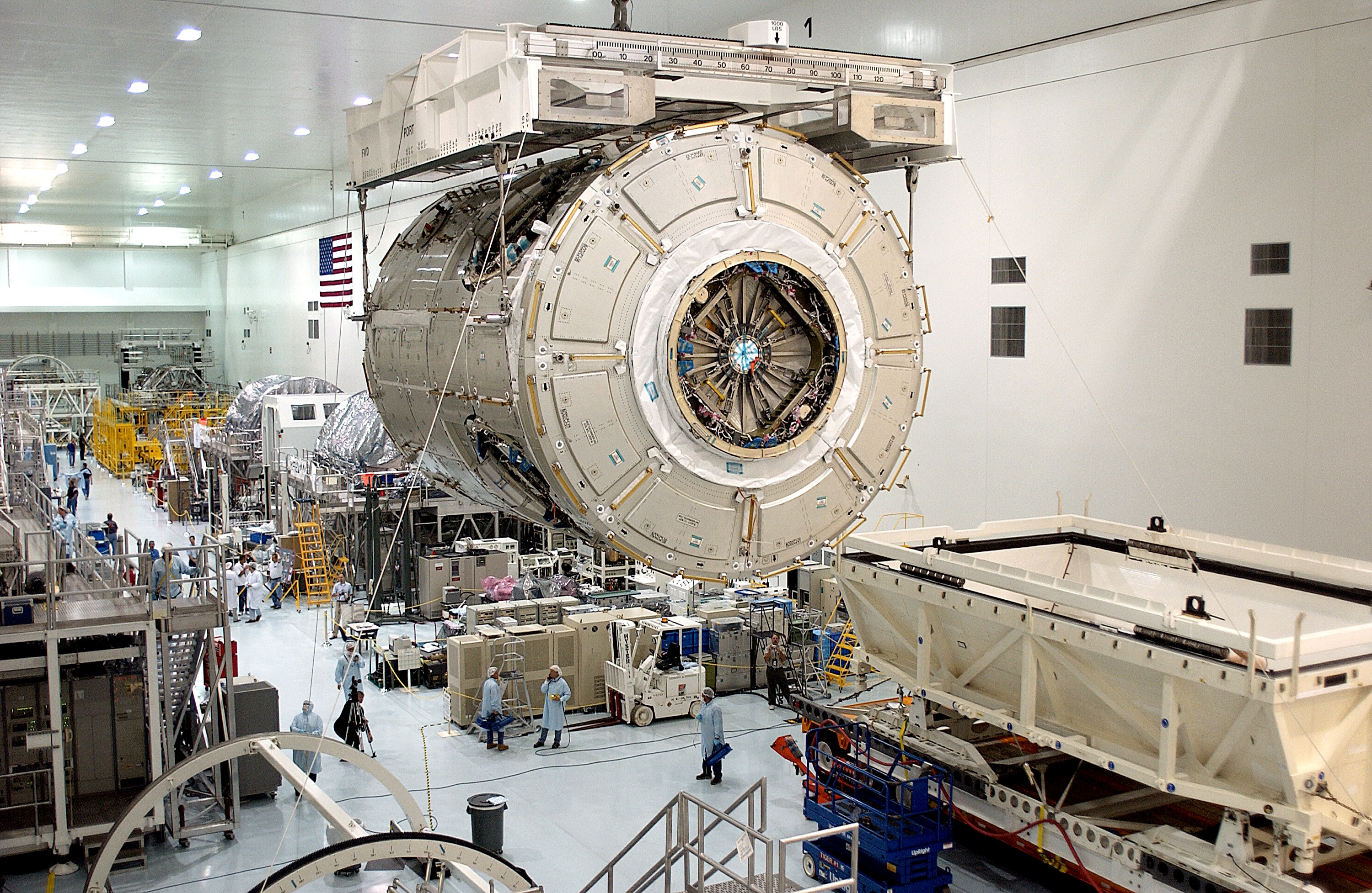 KENNEDY SPACE CENTER, FLA. - An overhead crane in the Space Station Processing Facility carries the U.S. Node 2 across the floor to a workstand. The second of three connecting modules on the International Space Station, the Italian-built Node 2 attaches to the end of the U.S. Lab and provides attach locations for the Japanese laboratory, European laboratory, the Centrifuge Accommodation Module and, later, Multipurpose Logistics Modules. It will provide the primary docking location for the Shuttle when a pressurized mating adapter is attached to Node 2. Installation of the module will complete the U.S. Core of the ISS. Node 2 is the designated payload for mission STS-120. No orbiter or launch date has been determined yet.
