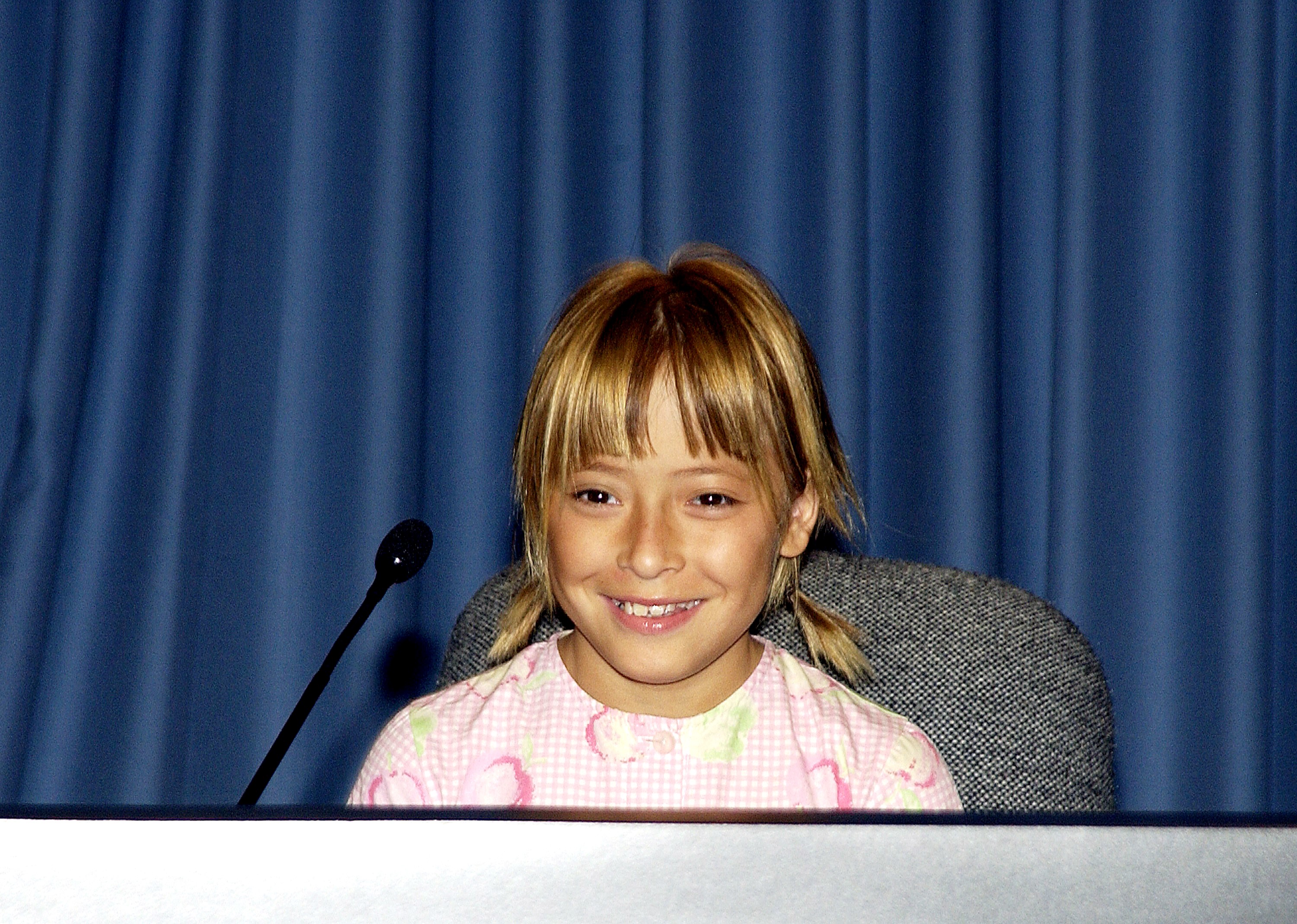 KENNEDY SPACE CENTER, FLA. - Nine-year-old Sofi Collis is introduced to the media at a press conference. The Siberian-born Arizona resident wrote the winning entry in the Name the Rovers Contest sponsored by NASA and the Lego Co., a Denmark-based toymaker, with collaboration from the Planetary Society, Pasadena, Calif. The names she selected for the Mars Exploration Rovers are "Spirit" and "Opportunity." The third grader's essay was chosen from more than 10,000 American student entries. NASA's twin Mars Exploration Rovers are designed to study the history of water on Mars. These robotic geologists are equipped with a robotic arm, a drilling tool, three spectrometers, and four pairs of cameras that allow them to have a human-like, 3D view of the terrain. Each rover could travel as far as 100 meters in one day to act as Mars scientists' eyes and hands, exploring an environment where humans are not yet able to go. MER-A, with the rover Spirit aboard, is scheduled to launch on June 8 at 2:06 p.m. EDT, with two launch opportunities each day during a launch period that closes on June 24.
