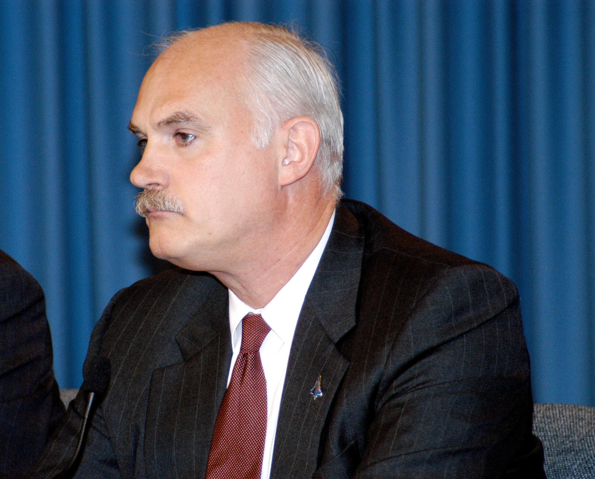 KENNEDY SPACE CENTER, FLA. - NASA Associate Administrator for Space Flight William F. Readdy participates in a press conference in KSC's Press Site Auditorium. The press conference followed the official announcement of James W. Kennedy as the next director of the NASA Kennedy Space Center (KSC) in Florida. Kennedy has served as KSC's deputy director since November 2002. He will succeed KSC Director Roy D. Bridges, who was appointed on June 13 to lead NASA's Langley Research Center, Hampton, Va.