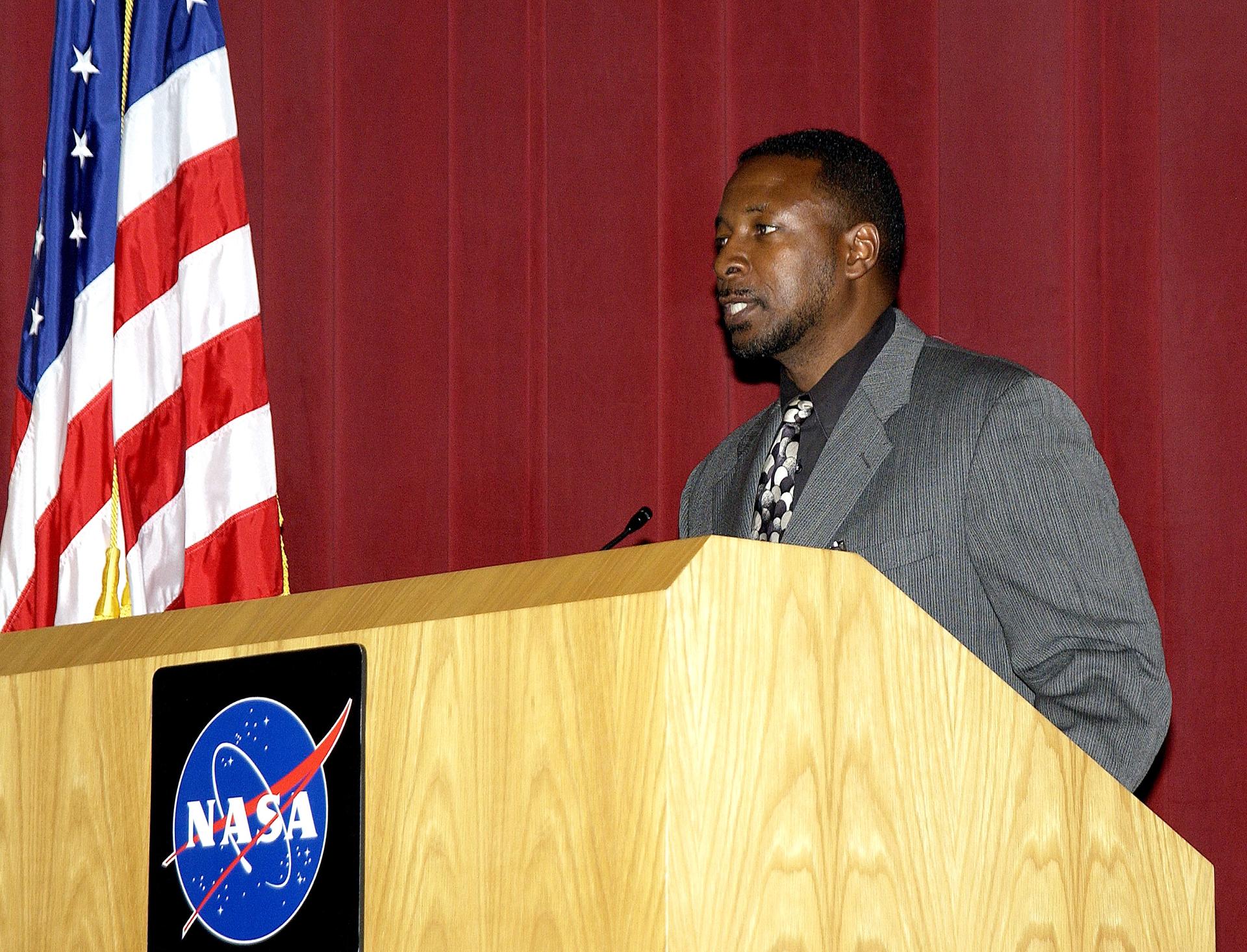 KENNEDY SPACE CENTER, FLA. - Dr. Woodrow Whitlow Jr., KSC deputy director, speaks to employees during Center Director Jim Kennedy’s first all-hands meeting for employees. Also on the agenda was Tim Wilson, assistant chief engineer for Shuttle, and Bill Pickavance, vice president and deputy program manager, Florida operations, United Space Alliance.. Representatives from the Shuttle program and contractor team were on hand to discuss the Columbia Accident Investigation Board report and where KSC stands in its progress toward return to flight.