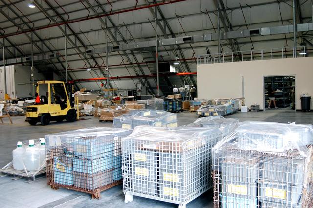 KENNEDY SPACE CENTER, FLA. - Equipment from the Thermal Protection System Facility (TPSF), damaged by Hurricane Frances, is moved into a hangar and storage facility near the KSC Shuttle Landing Facility. Previously, this hangar was used to house the Space Shuttle Columbia debris. Located in Launch Complex 39, the TPSF is used to manufacture both internal and external insulation products for the Space Shuttle orbiters. The storm's path over Florida took it through Cape Canaveral and KSC property during Labor Day weekend.