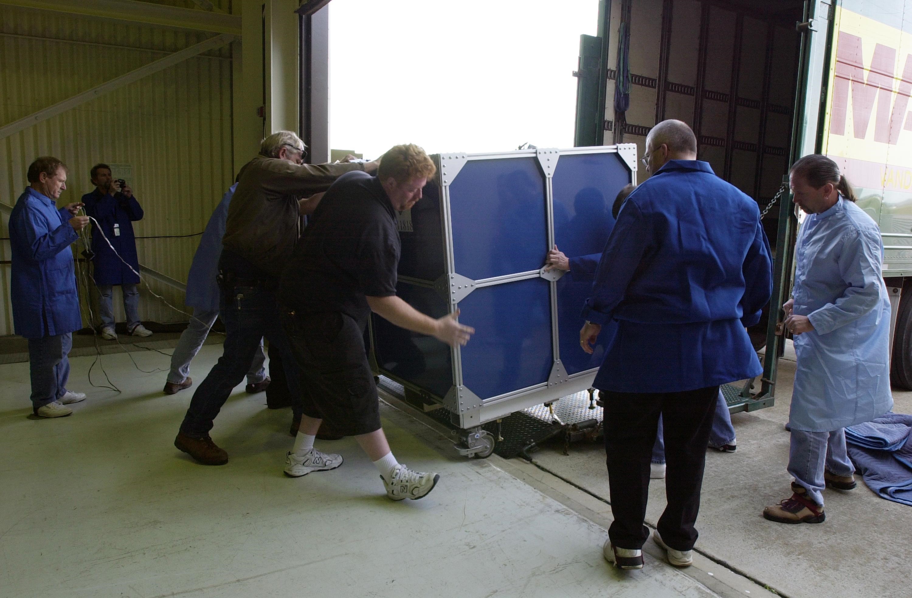VANDENBERG AIR FORCE BASE, Calif. — At Vandenberg Air Force Base in California, workers are moving the Space Technology 5 (ST5) spacecraft into Orbital Sciences’ Building 1555. There it will be mated with the Pegasus XL launch vehicle. ST5 will be launched by a Pegasus XL rocket. The satellites contain miniaturized redundant components and technologies. Each will validate New Millennium Program selected technologies, such as the Cold Gas Micro-Thruster and X-Band Transponder Communication System. After deployment from the Pegasus, the micro-satellites will be positioned in a “string of pearls” constellation that demonstrates the ability to position them to perform simultaneous multi-point measurements of the magnetic field using highly sensitive magnetometers. The data will help scientists understand and map the intensity and direction of the Earth’s magnetic field, its relation to space weather events, and affects on our planet. With such missions, NASA hopes to improve scientists’ ability to accurately forecast space weather and minimize its harmful effects on space- and ground-based systems. Launch of ST5 is scheduled for Feb. 28 from Vandenberg Air Force Base.