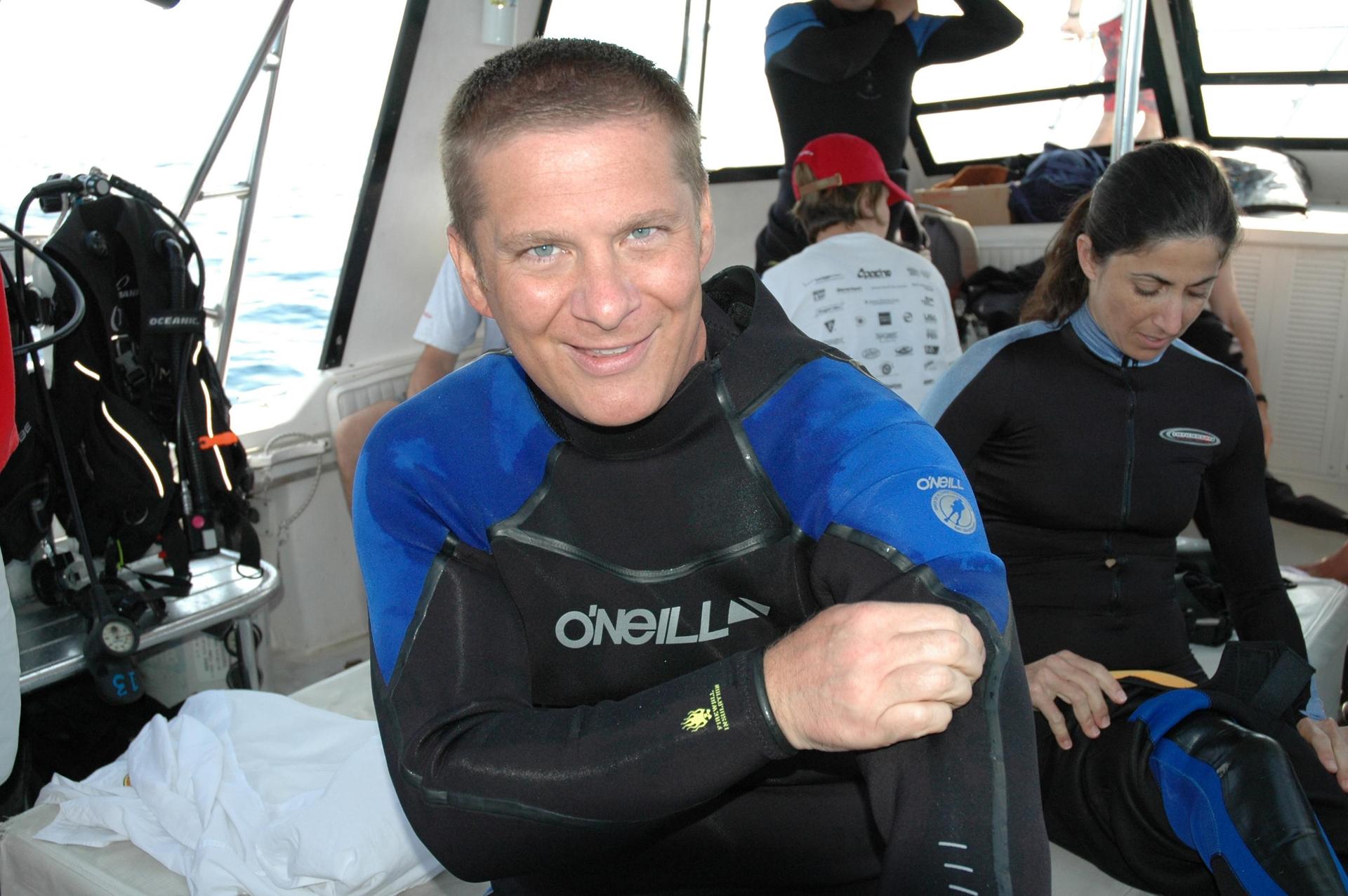 KENNEDY SPACE CENTER, FLA. -- Dr. Tim Broderick of the University of Cincinnati dons his wet suit before heading for the National Oceanic and Atmospheric Administration (NOAA) Aquarius Underwater Laboratory. Broderick is part of the team, which includes astronauts Dave Williams, Nicole Stott (at right) and Ron Garan, working on a 17-day undersea mission as part of the NASA Extreme Environment Mission Operations (NEEMO) project. Williams is team lead. The astronauts are testing space medicine concepts and moon-walking techniques. The undersea laboratory is situated three miles off Key Largo in the Florida Keys National Marine Sanctuary, anchored 62 feet below the surface.