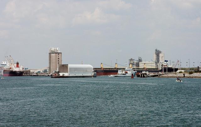 KENNEDY SPACE CENTER, FLA. - The Liberty Star tows the Pegasus barge to Port Canaveral, the last leg of its journey from the Michoud Assembly Facility in New Orleans to Kennedy Space Center. The barge carries the redesigned external fuel tank that will launch Space Shuttle Atlantis on the next shuttle mission, STS-115. A tugboat will continue the journey upriver to the Turn Basin where, after off-loading, the tank will be moved into the Vehicle Assembly Building and lifted into a checkout cell for further work. The tank, designated ET-118, will fly with many major safety changes, including the removal of the protuberance air load ramps. Photo credit: NASA/Jack Pfaller