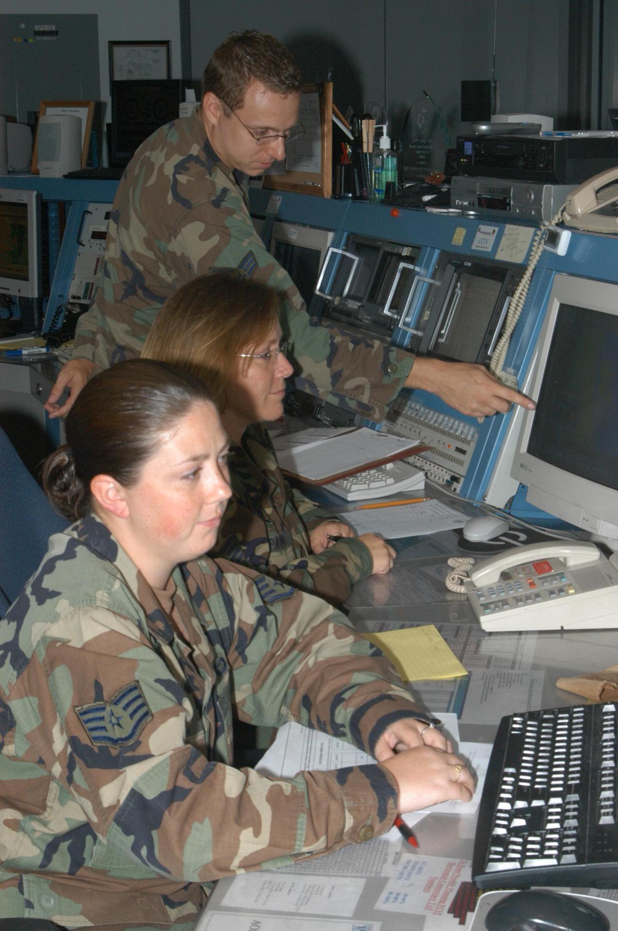 KENNEDY SPACE CENTER, FLA. - At the Cape Canaveral forecast facility in Florida, media were able to meet members of the weather team who review data used for forecasts as part of a tour of the facility. The team will play a role in the July 1 launch of Space Shuttle Discovery on mission STS-121. At the facility, which is operated by the U.S. Air Force 45th Weather Squadron, received a briefing on how the launch weather forecast is developed by Shuttle Weather Officer Kathy Winters and met the forecasters for the space shuttle and the expendable launch vehicles. Also participating were members of the Applied Meteorology Unit who provide special expertise to the forecasters by analyzing and interpreting unusual or inconsistent weather data. The media were able to see the release of the Rawinsonde weather balloon carrying instruments aloft to be used as part of developing the forecast. Photo credit: NASA/George Shelton