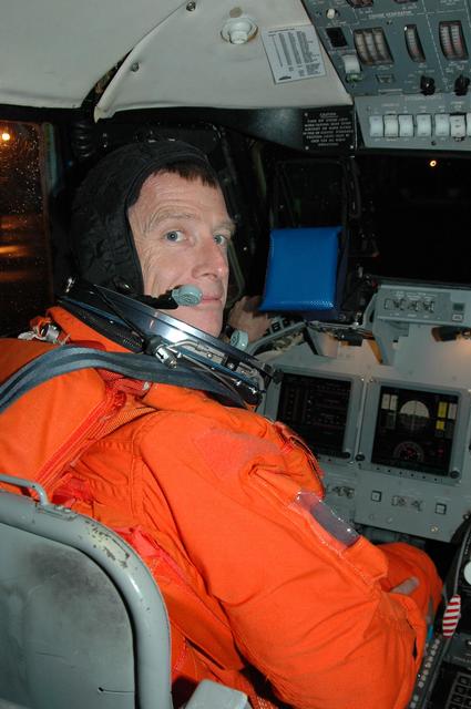 KENNEDY SPACE CENTER, FLA. - STS-115 Pilot Christopher Ferguson settles in the cockpit of the Shuttle Training Aircraft to practice landing the shuttle. STA practice is part of launch preparations. The STA is a Grumman American Aviation-built Gulf Stream II jet that was modified to simulate an orbiter’s cockpit, motion and visual cues, and handling qualities. In flight, the STA duplicates the orbiter’s atmospheric descent trajectory from approximately 35,000 feet altitude to landing on a runway. Because the orbiter is unpowered during re-entry and landing, its high-speed glide must be perfectly executed the first time. Mission STS-115 is scheduled to lift off about 4:30 p.m. Aug. 27. The crew will deliver and install the P3/P4 segment to the port side of the integrated truss system on the International Space Station. The truss includes a new set of photovoltaic solar arrays. When unfurled to their full length of 240 feet, the arrays will provide additional power for the station in preparation for the delivery of international science modules over the next two years. The mission is expected to last 11 days and includes three scheduled spacewalks. Photo credit: NASA/Kim Shiflett
