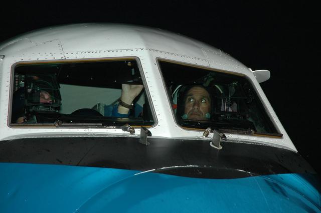 KENNEDY SPACE CENTER, FLA. -- Seated in the cockpit of the shuttle training aircraft at the Shuttle Landing Facility, STS-116 Pilot William Oefelein (left) and Commander Mark Polansky are getting ready to practice landing the orbiter. The mission crew is at KSC for the terminal countdown demonstration test, which are prelaunch preparations that include a simulated launch countdown. STA practice is part of the TCDT. The STA is a Grumman American Aviation-built Gulf Stream II jet that was modified to simulate an orbiter's cockpit, motion and visual cues, and handling qualities. In flight, the STA duplicates the orbiter's atmospheric descent trajectory from approximately 35,000 feet altitude to landing on a runway. Because the orbiter is unpowered during re-entry and landing, its high-speed glide must be perfectly executed the first time. Photo credit: NASA/Kim Shiflett