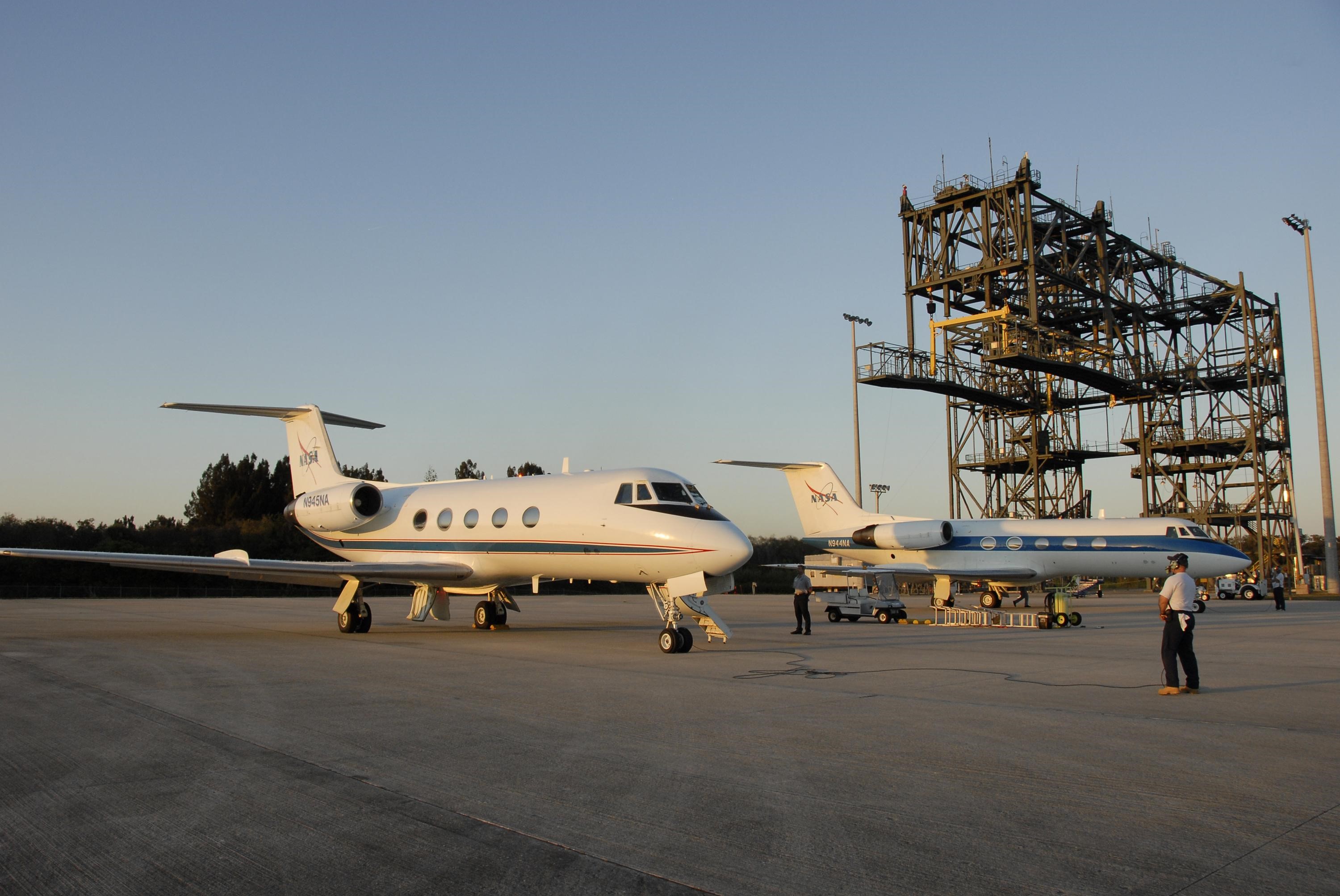 KENNEDY SPACE CENTER, FLA. -- The shuttle training aircraft (STA) sits on the tarmac at the Shuttle Landing Facility, ready for practice flights by Mission STS-117 Commander Rick Sturckow and Pilot Lee Archambault. The STA is a Grumman American Aviation-built Gulf Stream II jet that was modified to simulate an orbiter's cockpit, motion and visual cues, and handling qualities. In flight, the STA duplicates the orbiter's atmospheric descent trajectory from approximately 35,000 feet altitude to landing on a runway. Because the orbiter is unpowered during re-entry and landing, its high-speed glide must be perfectly executed the first time. The mission payload aboard Space Shuttle Atlantis is the S3/S4 integrated truss structure, along with a third set of solar arrays and batteries. The crew of six astronauts will install the truss to continue assembly of the International Space Station. STS-117 is the 118th space shuttle flight and the 21st flight to the station. Photo credit: NASA/Kim Shiflett