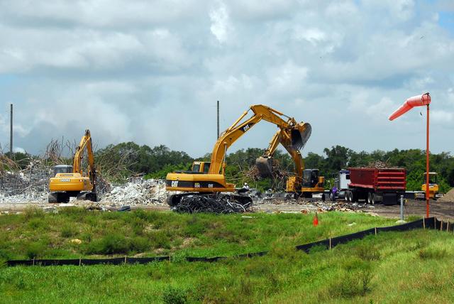 KENNEDY SPACE CENTER, FLA. -- The SAEF II Payload Processing Facility (M7-1210) was demolished having outlived its useful life. Located in the Industrial Area, the facility was originally built for the Viking Program in the mid-1970s. It was abandoned in 2004 and placed on the demolition list because it was no longer used due to the condition of the facility. NASA/George Shelton