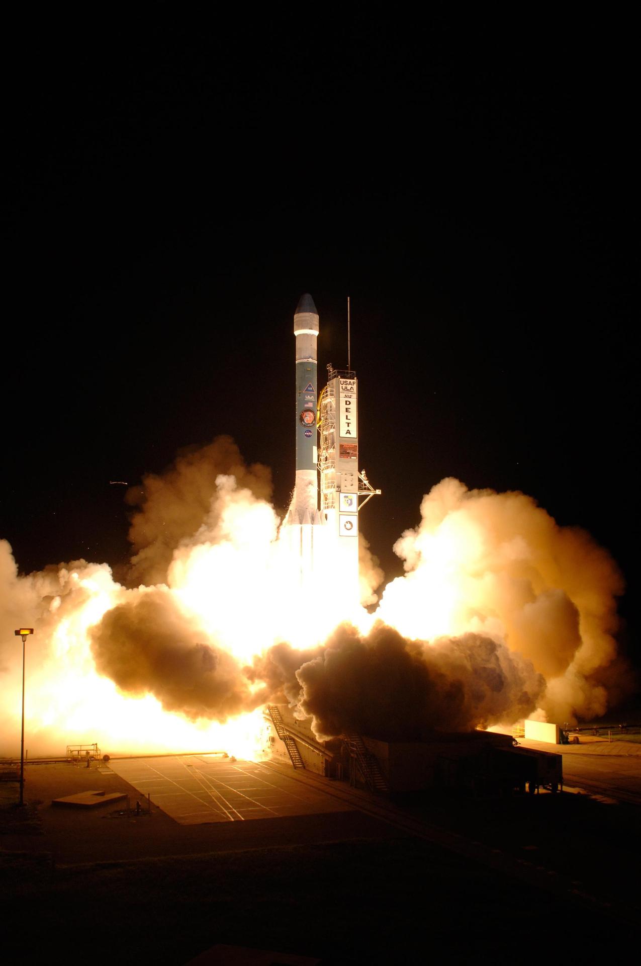 KENNEDY SPACE CENTER, FLA. - NASA's Phoenix spacecraft begins its journey to Mars aboard a Delta II 7925 rocket at 5:26 a.m. EDT from Pad 17A at Cape Canaveral Air Force Station. Phoenix will land in icy soils near the north polar, permanent ice cap of Mars and explore the history of the water in these soils and any associated rocks, while monitoring polar climate. Landing on Mars is planned in May 2008 on arctic ground where a mission currently in orbit, Mars Odyssey, has detected high concentrations of ice just beneath the top layer of soil. Photo credit: NASA/Tony Gray and Robert Murray