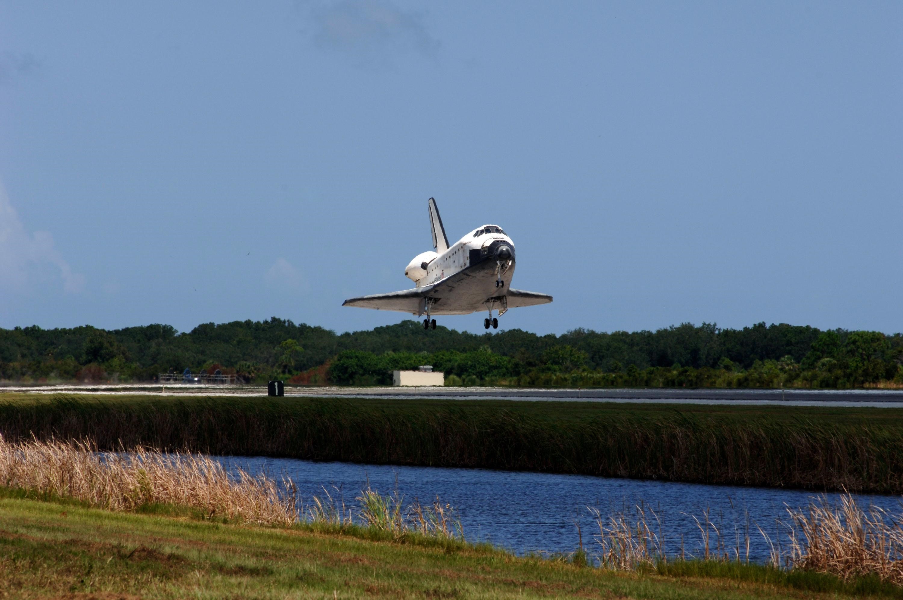 KENNEDY SPACE CENTER, FLA. -- With landing wheels down, Endeavour glides toward a landing on runway 15 at NASA's Kennedy Space Center after traveling nearly 5.3 million miles on mission STS-118. The Space Shuttle Endeavour crew, led by Commander Scott Kelly, completes a 13-day mission to the International Space Station. The STS-118 mission began Aug. 8 and installed a new gyroscope, an external spare parts platform and another truss segment to the expanding station. Endeavour's main gear touched down at 12:32:16 p.m. EDT. Nose gear touchdown was at 12:32:29 p.m. and wheel stop was at 12:33:20 p.m. Endeavour landed on orbit 201. STS-118 was the 119th space shuttle flight, the 22nd flight to the station, the 20th flight for Endeavour and the second of four missions planned for 2007. This was the 65th landing of an orbiter at Kennedy. Photo credit: NASA/Rafael Hernandez