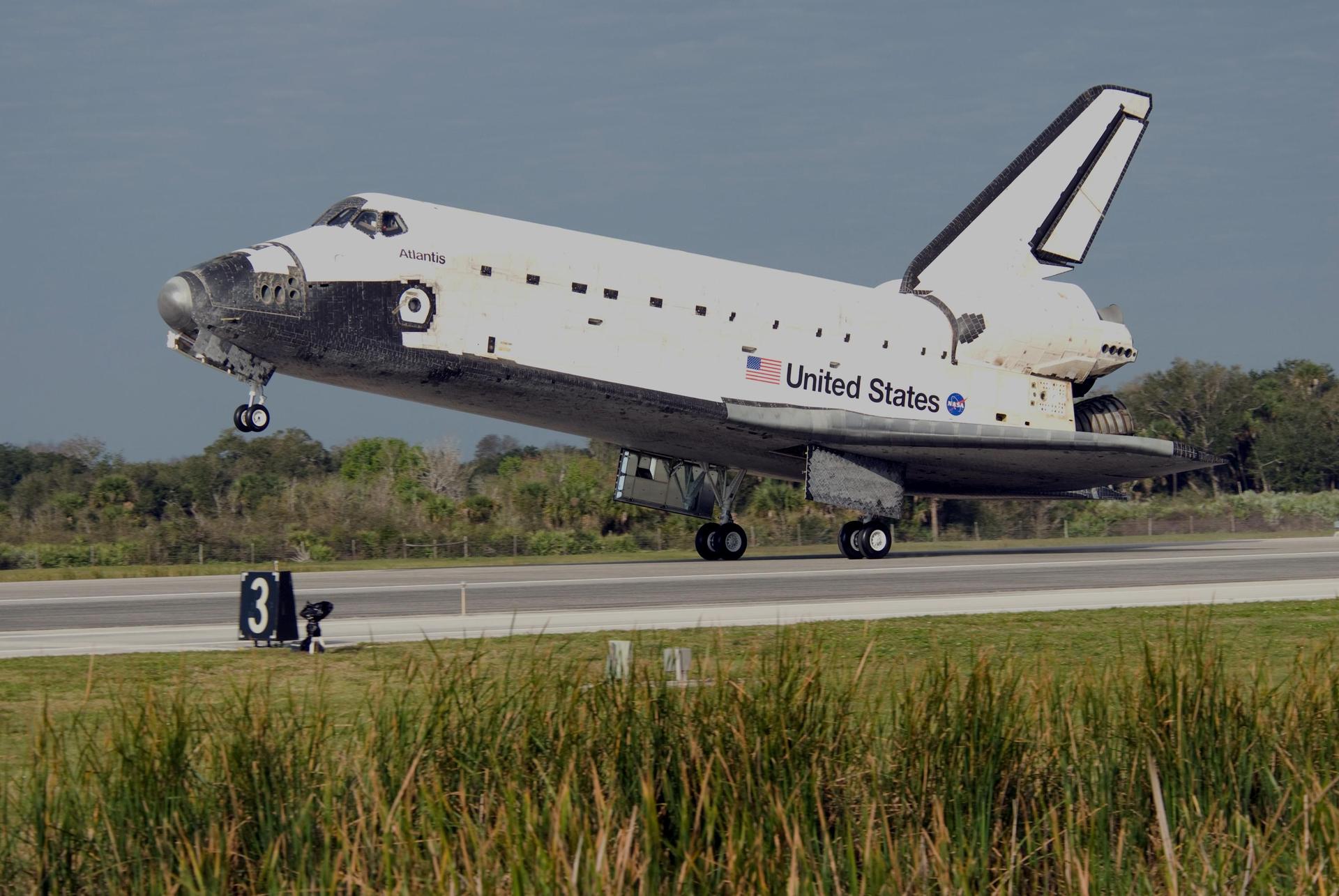 KENNEDY SPACE CENTER, FLA. -- The space shuttle Atlantis touches down on Runway 15 of the Shuttle Landing Facility at NASA's Kennedy Space Center. The shuttle landed on orbit 202 to complete the 13-day STS-122 mission. Main gear touchdown was 9:07:10 a.m. Nose gear touchdown was 9:07:20 a.m. Wheel stop was at 9:08:08 a.m. Mission elapsed time was 12 days, 18 hours, 21 minutes and 44 seconds. During the mission, Atlantis' crew installed the new Columbus laboratory, leaving a larger space station and one with increased science capabilities. The Columbus Research Module adds nearly 1,000 cubic feet of habitable volume and affords room for 10 experiment racks, each an independent science lab. Photo credit: NASA/Tom Farrar
