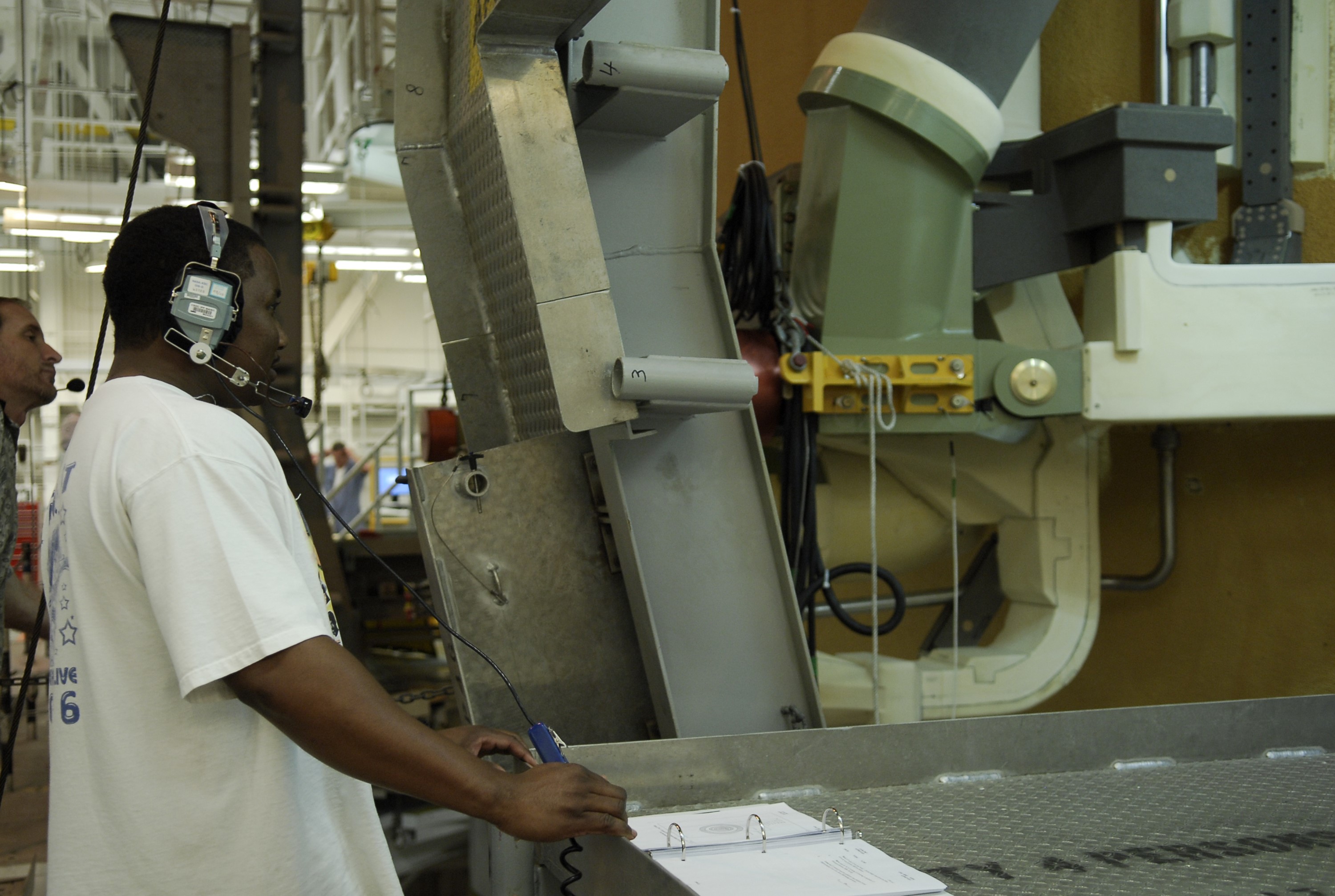CAPE CANAVERAL, Fla. -- In the Vehicle Assembly Building at NASA's Kennedy Space Center, Payton Jones, an aerospace senior technician with United Space Alliance, stands on E platform on the 14th floor of high bay 3 as he monitors the external tank being lowered and leveled between the solid rocket boosters and platforms. The tank and rockets will be mated for the launch of Discovery on the STS-124 mission to the International Space Station, targeted for May 31. On the mission, Discovery will transport the Kibo Japanese Experiment Module - Pressurized Module (JEM-PM) and the Japanese Remote Manipulator System (JEM-RMS) to the space station to add to the Kibo laboratory. Photo credit: NASA/Kim Shiflett