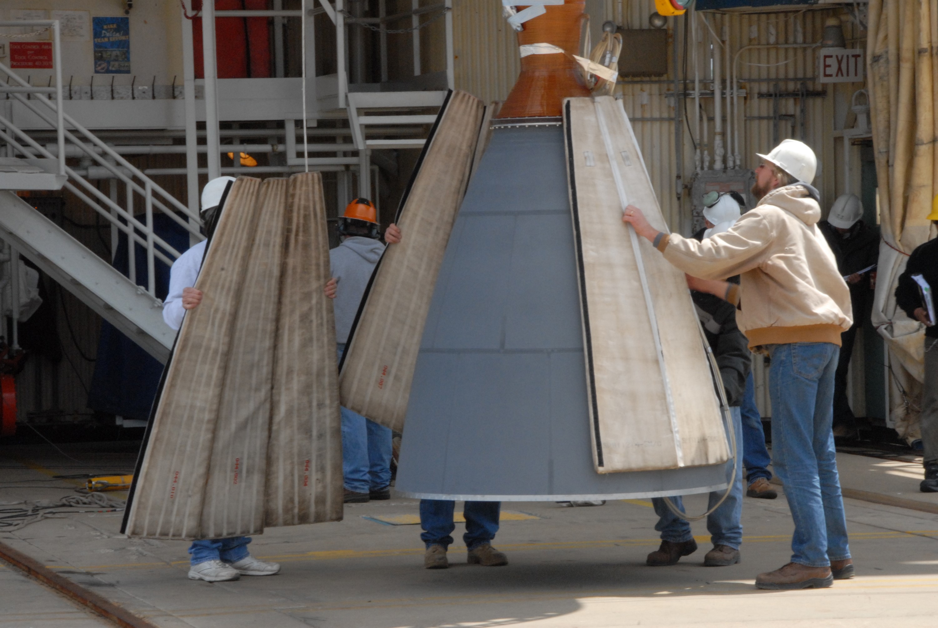 VANDENBERG AIR FORCE BASE, Calif. -- Workers on Space Launch Complex 2 at Vandenberg Air Force Base in California place protective covers over the engine of the Delta II second stage. It will be lifted into the mobile service tower for installation on the first stage for launch of the OSTM/Jason-2 spacecraft. The OSTM, or Ocean Topography Mission, on the Jason-2 satellite is a follow-on to Jason-1. It will take oceanographic studies of sea surface height into an operational mode for continued climate forecasting research and science and industrial applications. This satellite altimetry data will help determine ocean circulation, climate change and sea-level rise. OSTM is a joint effort by the National Oceanic and Atmospheric Administration, NASA, France’s Centre National d’Etudes Spatiales and the European Meteorological Satellite Organisation. OSTM/Jason-2 will be launched on June 20. Photo credit: NASA