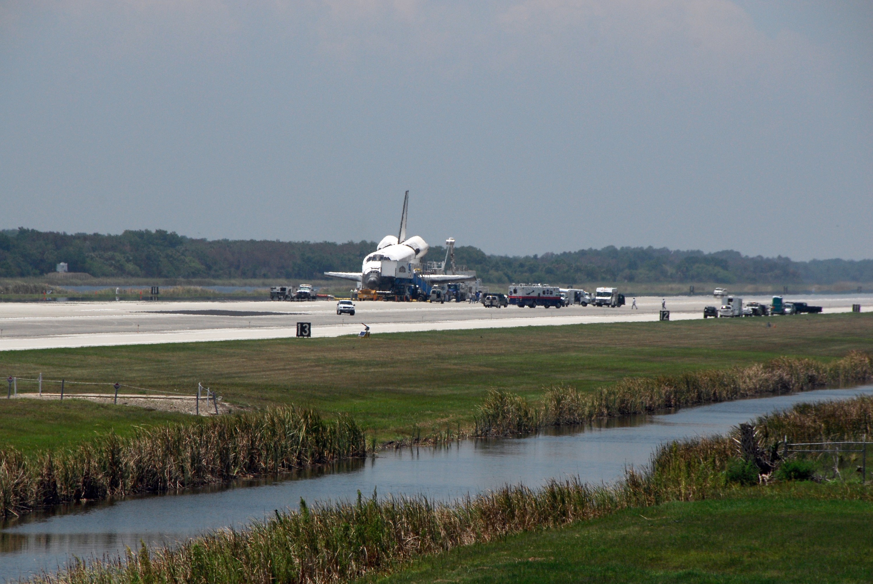 CAPE CANAVERAL, Fla. – A crew transport vehicle, or CTV, approaches space shuttle Discovery on the Shuttle Landing Facility at NASA's Kennedy Space Center. Discovery landed on Runway 15, ending the 14-day, STS-124 mission to the International Space Station. Discovery has been purged -- providing cool and humidified air conditioning to the payload bay and other cavities to remove any residual explosive or toxic fumes – while still on the runway. Cooling transfer to ground services occurs at about the same time, allowing onboard cooling to be shut down. When it is determined that the area in and around the orbiter is safe, the crew will departure from the orbiter to the CTV. The STS-124 mission delivered the Japan Aerospace Exploration Agency's large Japanese Pressurized Module and its remote manipulator system to the space station. Photo credit: NASA/Kim Shiflett