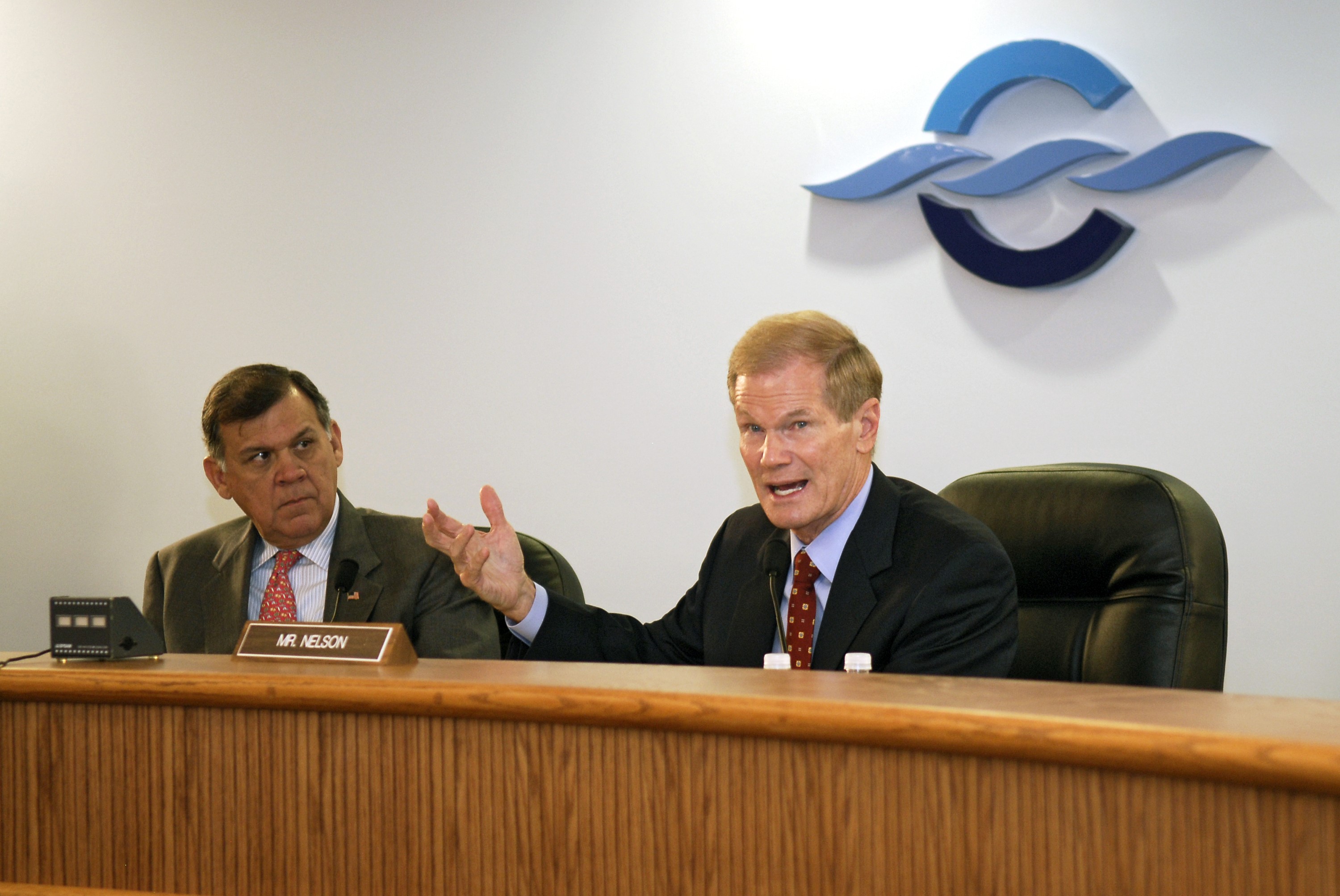 CAPE CANAVERAL, Fla. – A Senate field hearing held at the Canaveral Port Authority and chaired by Florida Sen. Bill Nelson (right) focuses on workforce related challenges at NASA's Kennedy Space Center and potential solutions to mitigate the transition's effects on the community. The hearing examined issues surrounding the retirement of the space shuttle and the transition to the new Orion/Ares system. On the left is Florida Sen. Mel Martinez. NASA was represented by Deputy Associate Administrator of Exploration Systems Doug Cooke, Administrator Michael Griffin and Associate Administrator of Space Operations William Gerstenmaier. Photo credit: NASA/Kim Shiflett