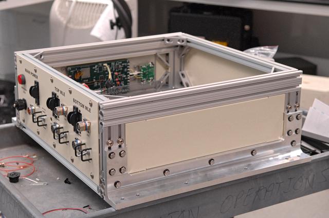 CAPE CANAVERAL, Fla. – In the Life Science Building at NASA's Kennedy Space Center, a space experiment rack is under development for flight aboard NASA's first commercially-provided research flights on Zero Gravity Corporation's reduced gravity aircraft. Known as the FASTRACK Space Experiment Platform, the rack is designed to support two standard lockers that fit inside the space shuttle's crew middeck. It is being developed jointly by Kennedy and Space Florida to facilitate NASA and commercial use of reusable U.S. suborbital flight vehicles currently under development. FASTRACK will enable investigators to test experiments, apparatus and analytical techniques in hardware compatible with the International Space Station, and to perform science that can be carried out during the reduced gravity available for brief periods during aircraft parabolas. Flight testing of the FASTRACK will be performed on four consecutive days between September 9-12 from Ellington Field near NASA's Johnson Space Center, Houston. Photo credit: NASA/Troy Cryder