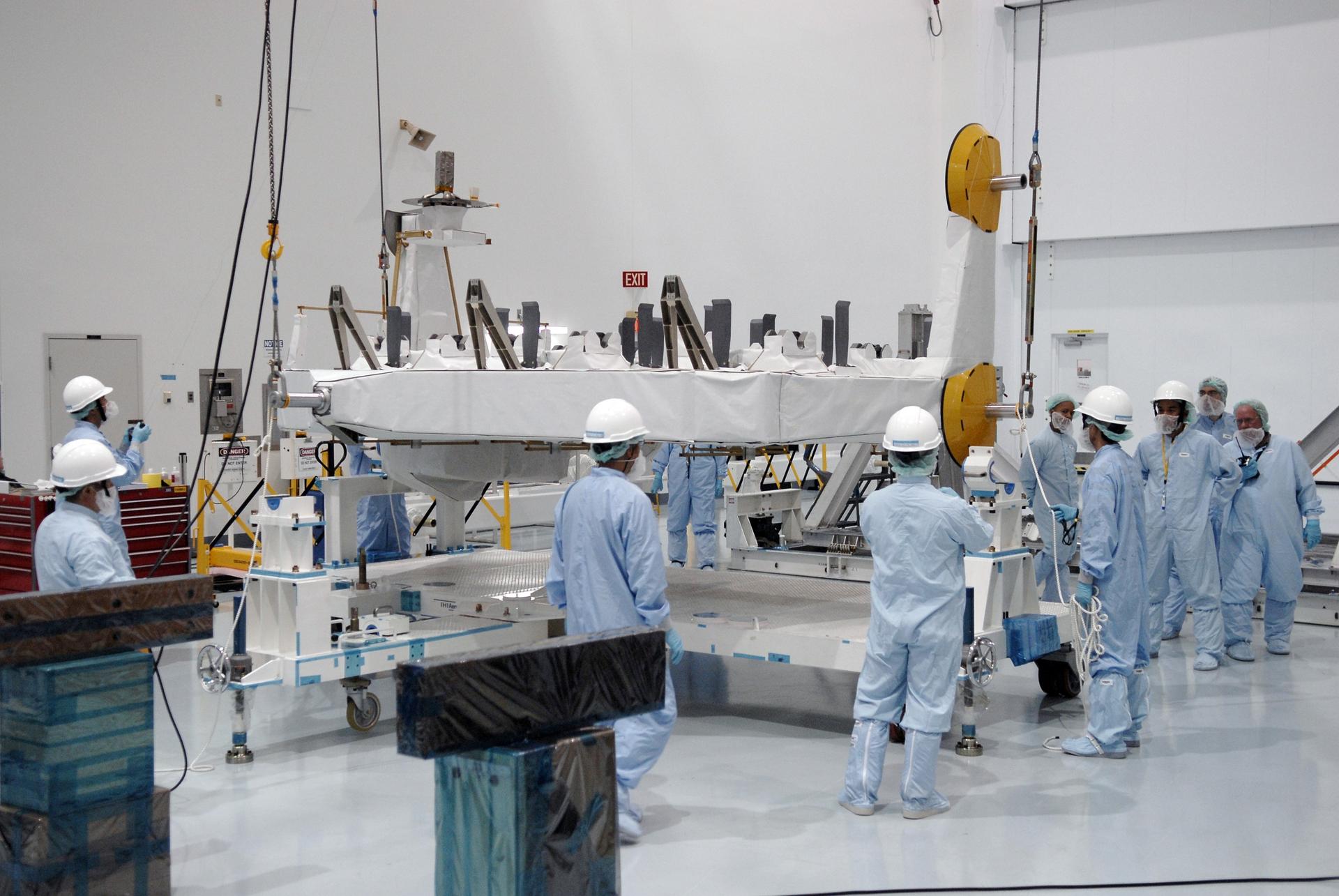 CAPE CANAVERAL, Fla. - In the Space Station Processing Facility at NASA's Kennedy Space Center in Florida, cables lower the Kibo Experiment Logistics Module Exposed Section, or ELM-ES, onto a work stand. The ELM-ES is one of the final components of the Japan Aerospace Exploration Agency's Kibo laboratory for the International Space Station. It can provide payload storage space and can carry up to three payloads at launch. In addition, the ELM-ES provides a logistics function where it can be returned to the ground aboard the space shuttle. The ELM-ES will be carried aboard space shuttle Endeavour on the STS-127 mission targeted for launch May 15, 2009. Photo credit: NASA/Kim Shiflett
