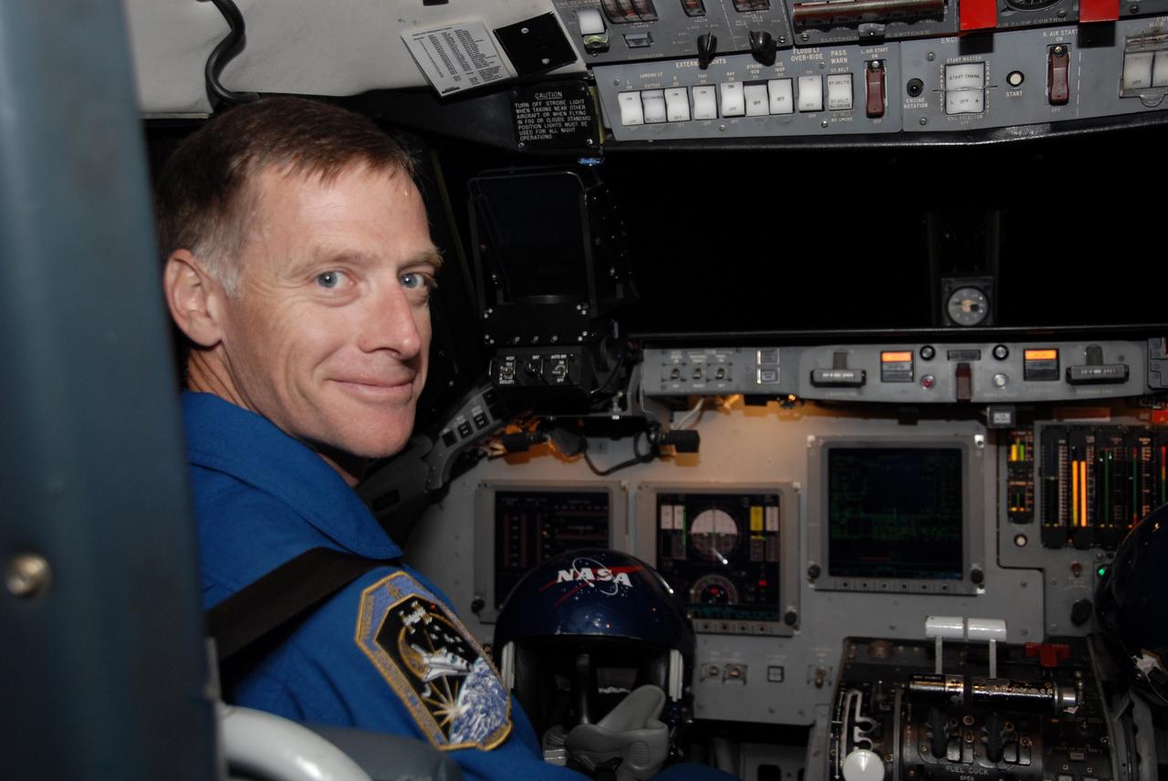 CAPE CANAVERAL, Fla. - On the Shuttle Landing Facility at NASA's Kennedy Space Center in Florida, space shuttle Endeavour’s STS-126 commander, Chris Ferguson, sits at the controls of the Shuttle Training Aircraft, or STA. Ferguson flew the STA to practice landing the shuttle on the runway. The STA is a Grumman American Aviation-built Gulf Stream II jet that was modified to simulate a shuttle’s cockpit, motion and visual cues, and handling qualities. In flight, the aircraft duplicates the shuttle’s atmospheric descent trajectory from approximately 35,000 feet altitude to landing on a runway. Ferguson previously served as pilot on the STS-115 mission, which flew in September 2006. The STS-126 mission to the International Space Station is targeted to launch Nov. 16. Photo credit: NASA/Cory Huston