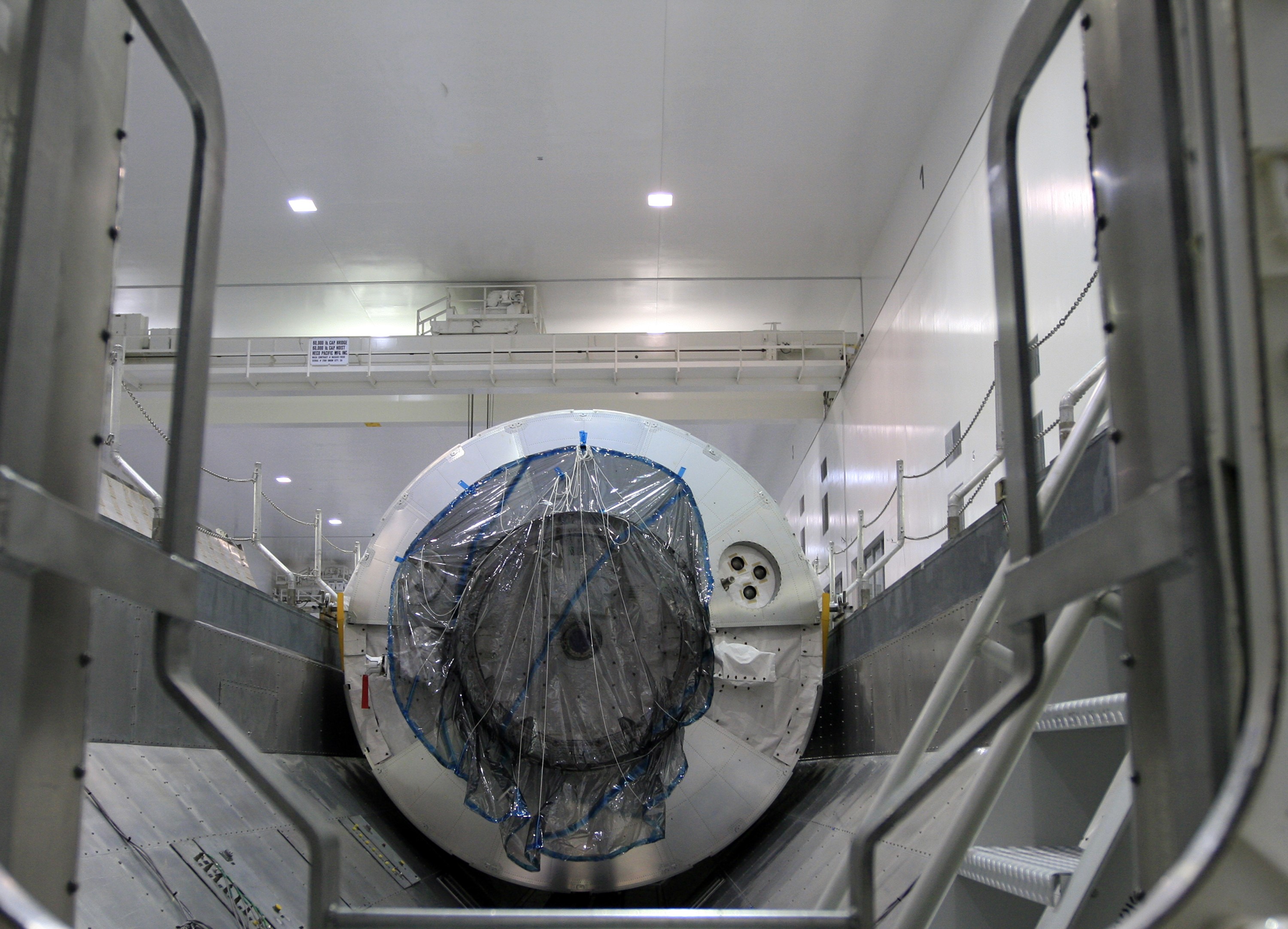 CAPE CANAVERAL, Fla. - In the Space Station Processing Facility at NASA's Kennedy Space Center in Florida, the Multi-Purpose Logistics Module Leonardo is installed in the payload canister for transfer to Launch Pad 39A. Leonardo is part of space shuttle Endeavour's payload on the STS-126 mission to the International Space Station. At the pad, the payload canister will release its cargo into the Payload Changeout Room. Later, the payload will be installed in space shuttle Endeavour's payload bay. The module contains supplies and equipment, including additional crew quarters, equipment for the regenerative life support system and spare hardware. Endeavour is targeted for launch on Nov. 14. Photo credit: NASA/Troy Cryder