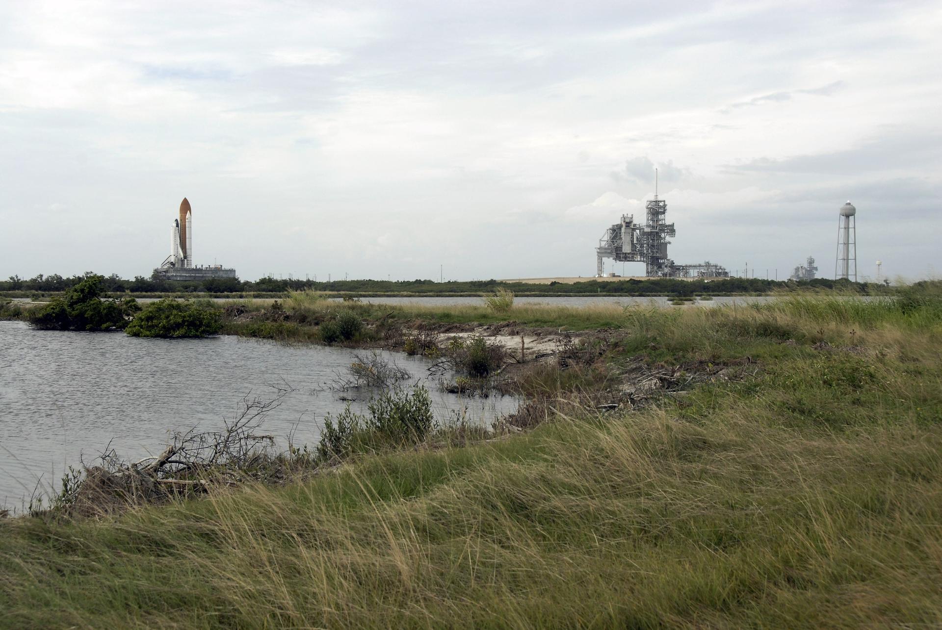 CAPE CANAVERAL, Fla. - At NASA's Kennedy Space Center in Florida, space shuttle Endeavour rolls toward Launch Pad 39A, at right. The shuttle earlier moved off Launch Pad 39B starting at 8:28 am. EDT to head for pad 39A. Endeavour is targeted to launch Nov. 14 on the STS-126 mission. On this 27th mission to the International Space Station, Endeavour will carry the Lightweight Multi-Purpose Experiment Support Structure Carrier and the Multi-Purpose Logistics Module Leonardo that will hold supplies and equipment, including additional crew quarters, additional exercise equipment, spare hardware and equipment for the regenerative life support system. Photo credit: NASA/Kim Shiflett