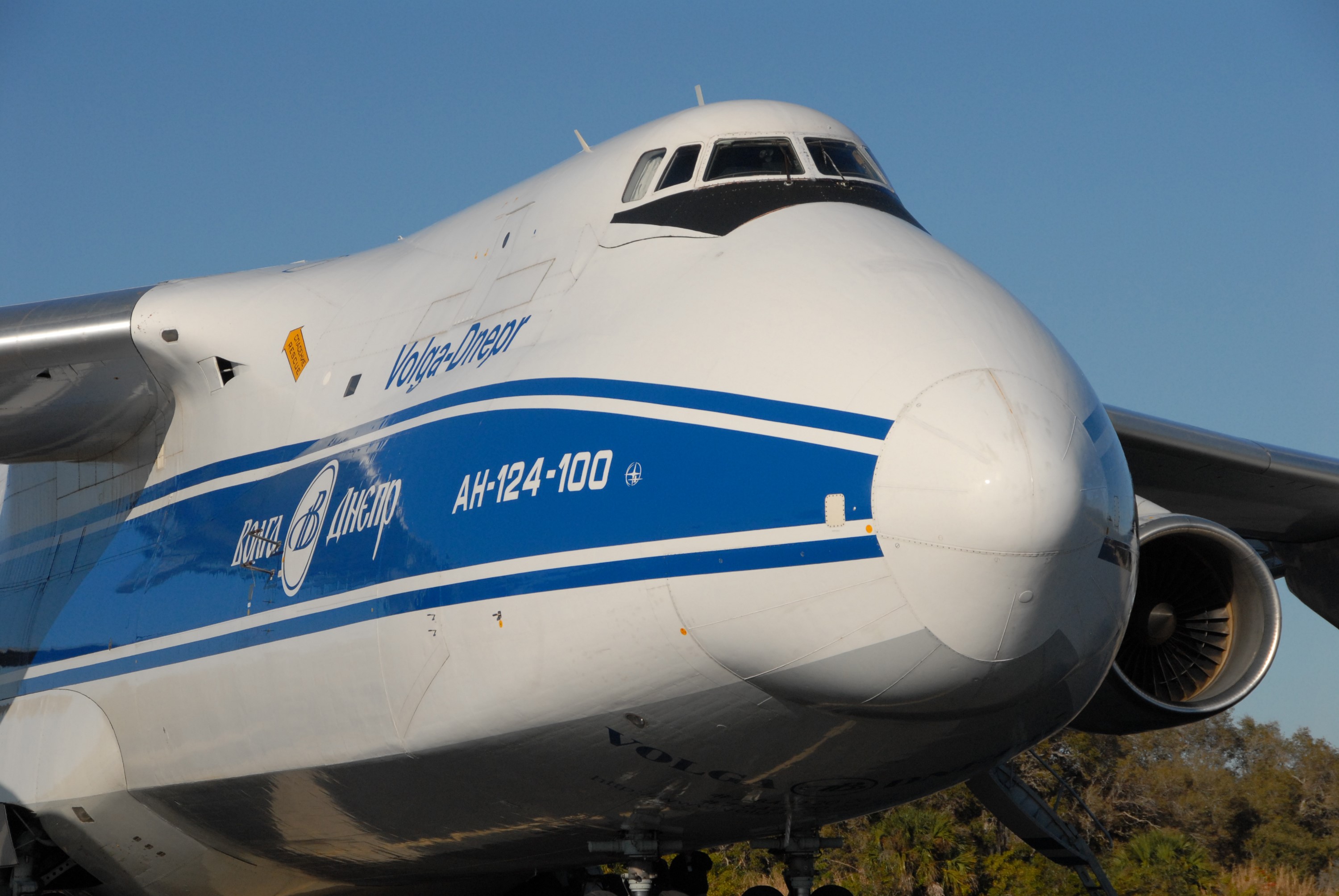 CAPE CANAVERAL, Fla. – The Russian AH-124-100 aircraft arrives at Cape Canaveral Air Force Station's skid strip in Florida carrying the Centaur stage of the Atlas V rocket that will launch NASA's Lunar Reconnaissance Orbiter, or LRO, and NASA's Lunar CRater Observation and Sensing Satellite, known as LCROSS. The two spacecraft will be integrated with the Atlas V and tested for final flight worthiness. Launch is scheduled for the spring. LCROSS and LRO are the first missions in NASA's plan to return humans to the moon and begin establishing a lunar outpost by 2020. Photo credit: NASA/Troy Cryder