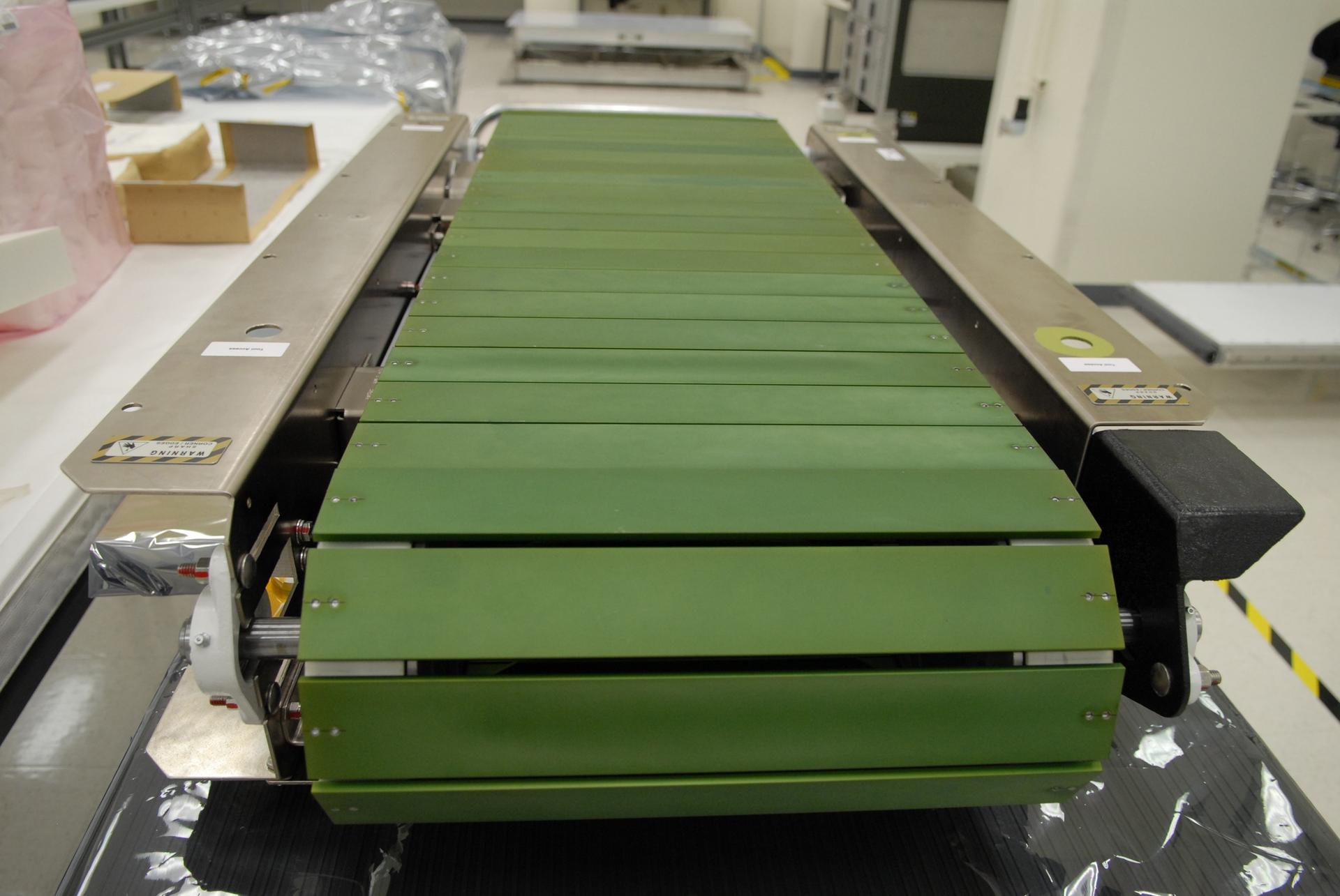 CAPE CANAVERAL, Fla. –– In the Space Station Processing Facility at NASA's Kennedy Space Center in Florida, preparations are under way to pack the Combined Operational Load Bearing External Resistance Treadmill, or COLBERT, for launch to the International Space Station on the space shuttle Discovery STS-128 mission. The treadmill is named after comedian Stephen Colbert, the host of Comedy Central’s “The Colbert Report.” Colbert urged his viewers to suggest the name “Colbert” as the name for the station’s Node 3 module. Although his name did receive the most entries in an Internet polling contest, NASA chose the name “Tranquility” to honor the accomplishments of the Apollo 11 mission. COLBERT will be installed in Tranquility after the node arrives at the station next year. Launch of STS-128 is targeted for Aug. 6, 2009. Photo credit: NASA/Jack Pfaller