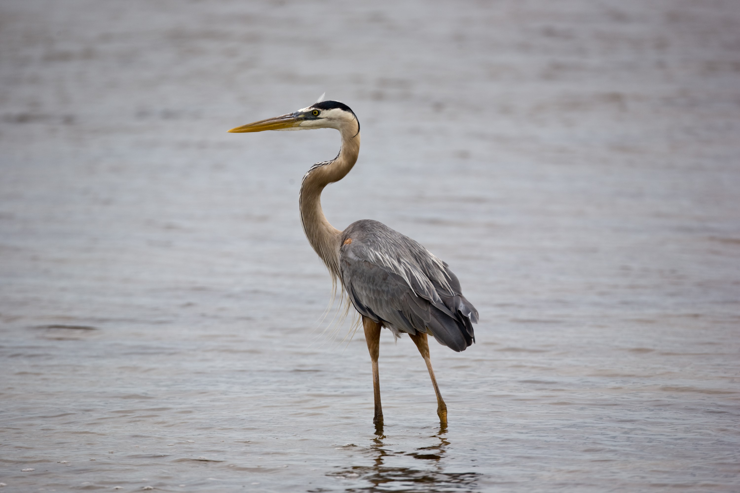 CAPE CANAVERAL, Fla. –– A great blue heron takes its familiar stance at the edge of the water, watching for fish or frogs, at NASA's Kennedy Space Center in Florida. A frequent sight around Kennedy, this large heron inhabits lakes, ponds, rivers and marshes in a range from Alaska south to Mexico and the West Indies. Kennedy shares a boundary with the Merritt Island National Wildlife Refuge that includes salt-water estuaries, brackish marshes, hardwood hammocks and pine flatwoods. Photo credit: NASA/Dimitri Gerondidakis