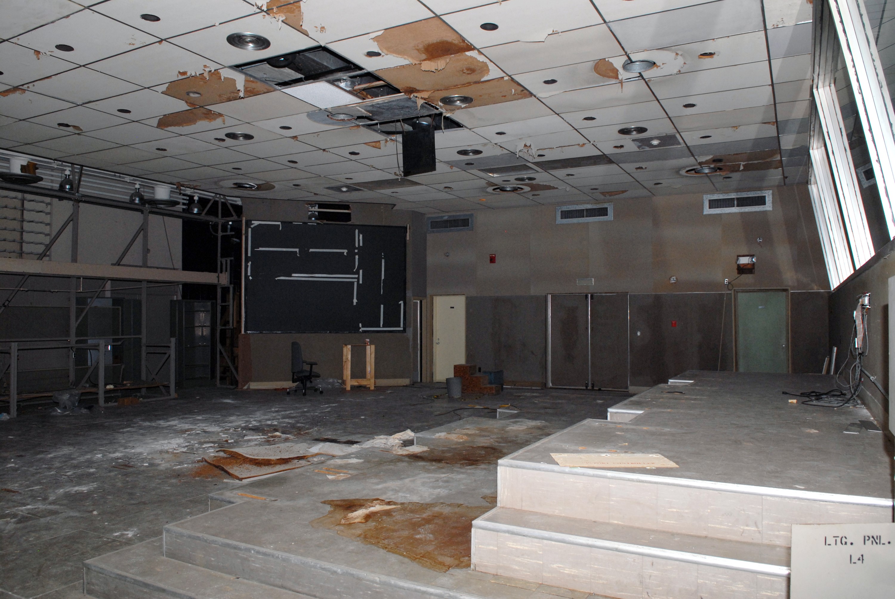 CAPE CANAVERAL, Fla. – Water damage and mold in rooms in the 50-year-old Mission Control Center on the Cape Canaveral Air Force Station in Florida are part of the reason for NASA's decision to demolish the site. The center has been out of use for many years, and NASA has found no valid operational or other use for the facility. The facility once controlled all manned Mercury space flights and the first two unmanned Gemini flights from May 1961-1963. It provided launch, orbital, re-entry and landing control for the flights. That function was later transferred to NASA's Johnson Space Center in Houston. Photo credit: NASA/Jack Pfaller