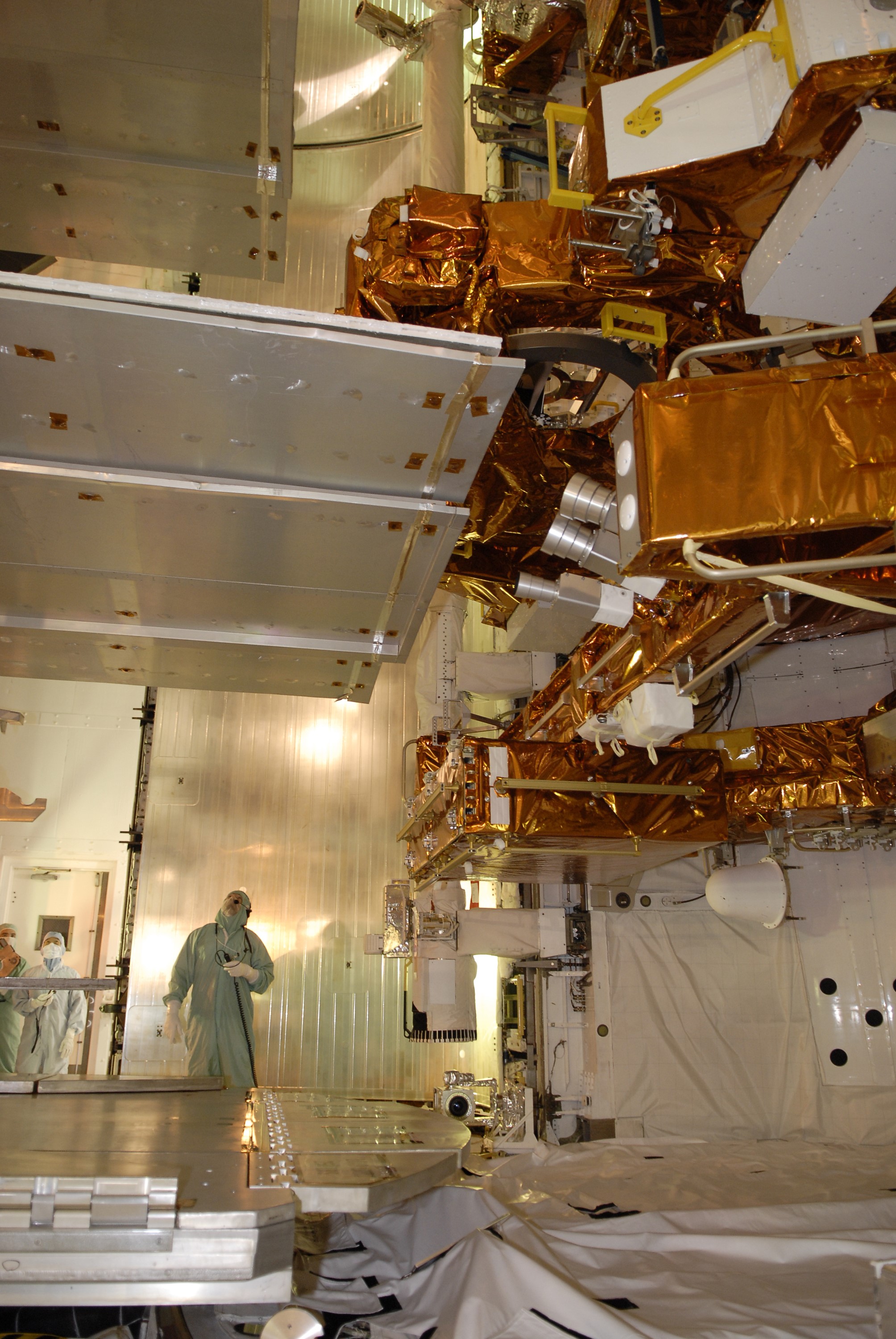 CAPE CANAVERAL, Fla. – On Launch Pad 39A at NASA's Kennedy Space Center in Florida, the payload ground-handling mechanism, known as the PGHM, is retracted after installing the payloads in space shuttle Atlantis' payload bay, at right, for the STS-125 mission. The payload includes the Flight Support System, or FSS, carrier with the Soft Capture Mechanism; the Multi-Use Lightweight Equipment, or MULE, carrier with the Science Instrument Command and Data Handling Unit, or SIC&DH; the Orbital Replacement Unit Carrier, or ORUC, with the Cosmic Origins Spectrograph, or COS, and an IMAX 3D camera. Atlantis' crew will service NASA's Hubble Space Telescope for the fifth and final time. The flight will include five spacewalks during which astronauts will refurbish and upgrade the telescope with state-of-the-art science instruments. As a result, Hubble's capabilities will be expanded and its operational lifespan extended through at least 2014. Photo credit: NASA/Kim Shiflett