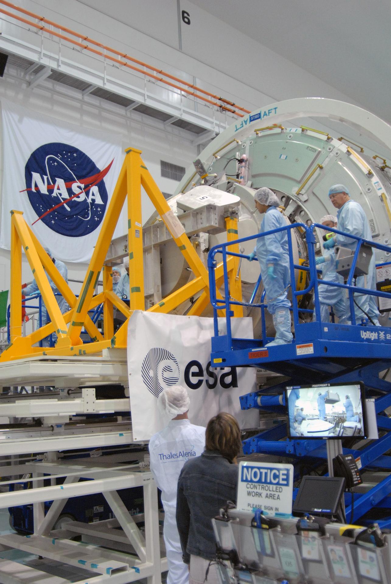 CAPE CANAVERAL, Fla. – In NASA Kennedy Space Center's Space Station Processing Facility, the Cupola module is being mated to the Tranquility node on the work stand. Cupola and Tranquility are the payload for space shuttle Endeavour's STS-130 mission to the International Space Station. The module was built for the European Space Agency by Alenia Spazio in Turin, Italy. When attached to the Tranquility Node 3 module, Cupola will resemble a circular bay window that will provide a vastly improved view of the station's exterior. Just under 10 feet in diameter, the module will accommodate two crew members and portable workstations that can control station and robotic activities. The multi-directional view will allow the crew to monitor spacewalks and docking operations, as well as provide a spectacular view of Earth and other celestial objects. Endeavour is targeted to launch Feb. 4, 2010. Photo credit: NASA/Cory Huston