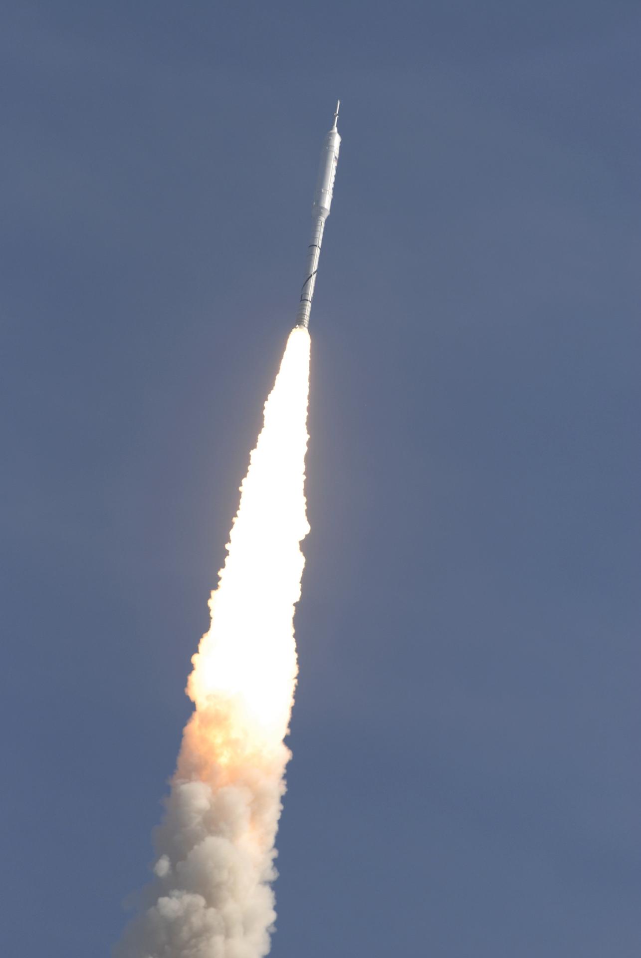 CAPE CANAVERAL, Fla. - With more than 23 times the power output of the Hoover Dam, the Constellation Program's Ares I-X test rocket zooms off Launch Complex 39B at NASA's Kennedy Space Center in Florida. The rocket produces 2.96 million pounds of thrust at liftoff and reaches a speed of 100 mph in eight seconds. Liftoff of the 6-minute flight test was at 11:30 a.m. EDT Oct. 28. This was the first launch from Kennedy's pads of a vehicle other than the space shuttle since the Apollo Program's Saturn rockets were retired. The parts used to make the Ares I-X booster flew on 30 different shuttle missions ranging from STS-29 in 1989 to STS-106 in 2000. The data returned from more than 700 sensors throughout the rocket will be used to refine the design of future launch vehicles and bring NASA one step closer to reaching its exploration goals. For information on the Ares I-X vehicle and flight test, visit http://www.nasa.gov/aresIX. Photo credit: NASA/Kim Shiflett
