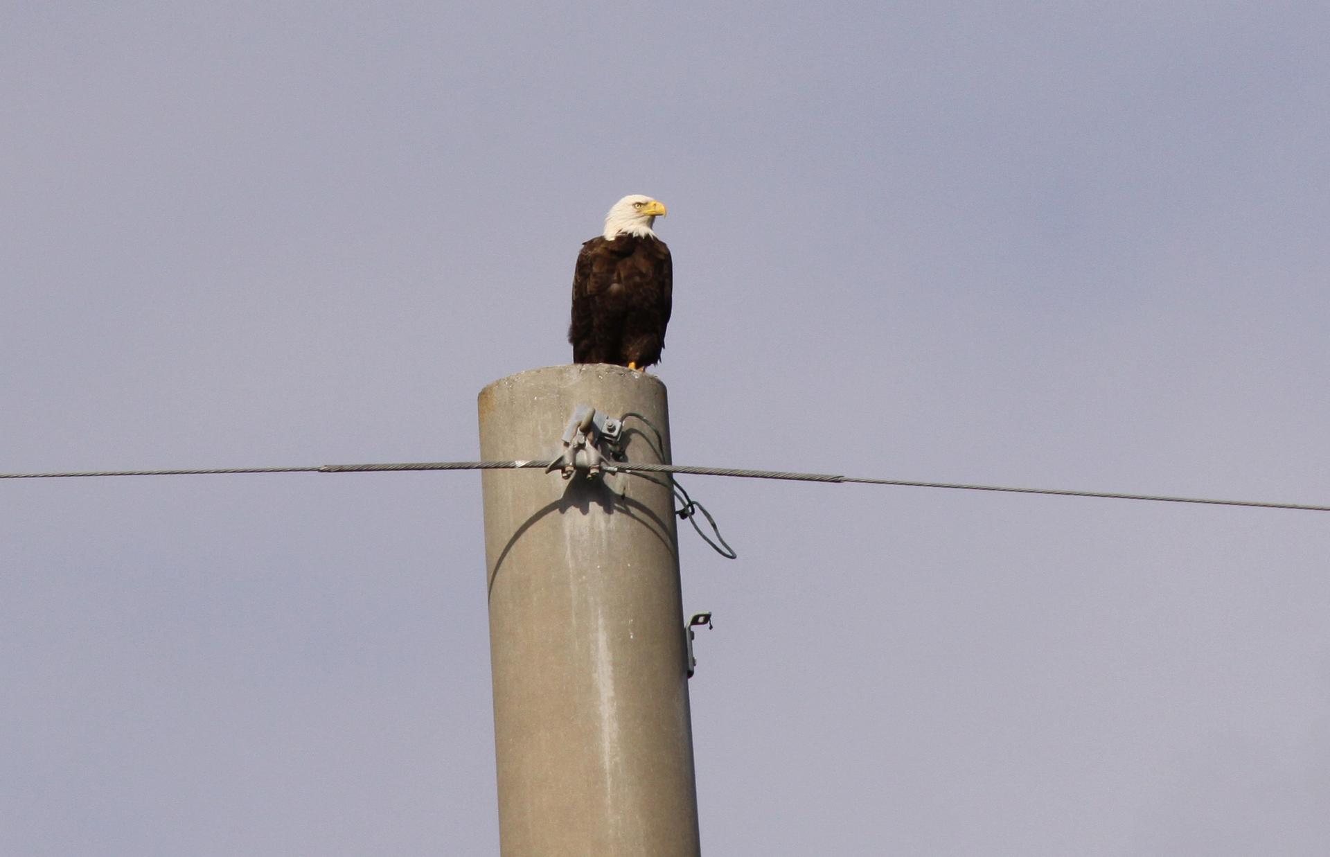 CAPE CANAVERAL, Fla. - A bald eagle is king of all he surveys at NASA's Kennedy Space Center in Florida. The Merritt Island National Wildlife Refuge coexists with Kennedy Space Center and provides a habitat for 330 species of birds including bald eagles. A variety of other wildlife - 117 kinds of fish, 65 types of amphibians and reptiles, 31 different mammals, and 1,045 species of plants - also inhabit the refuge. For information on the refuge, visit http://www.fws.gov/merrittisland/Index.html. For information on Kennedy Space Center, visit http://www.nasa.gov/kennedy. Photo credit: NASA/Jack Pfaller